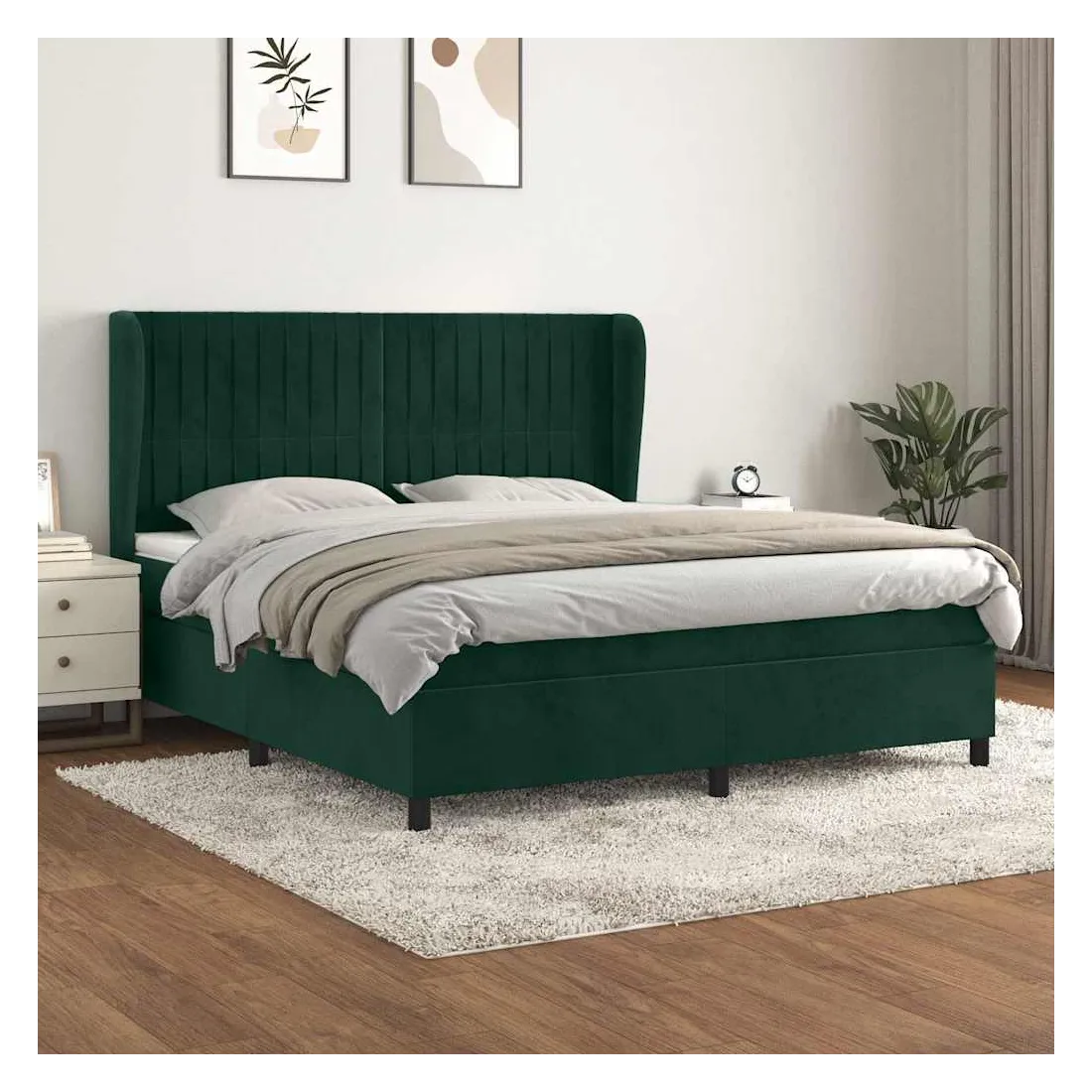 Sommier à lattes de lit et matelas Vert foncé 160x200cm Velours