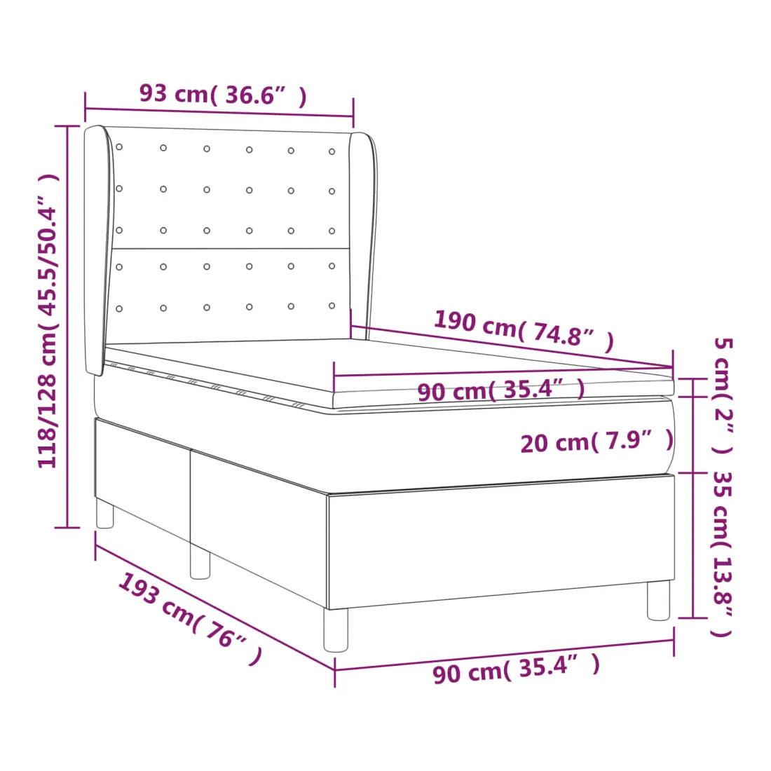 Sommier à lattes de lit et matelas Gris foncé 90x190 cm Velours