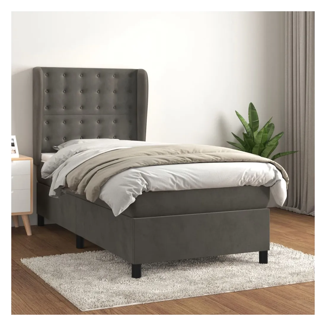 Utilisez ce lit à sommier pour profiter d'une nuit de sommeil réparatrice ! Il vous offre une relaxation maximale et un sommeil agréable. Velours doux : le velours est un tissu doux et luxueux qui se reconnaît à son tas dense de fibres uniformément coupées qui ont une touche lisse. Le tissu en velours présente un toucher doux distinctif, ce qui le rend confortable au toucher.Tête de lit pratique : la tête de lit est réglable en hauteur selon vos préférences. La tête de lit vous offre un excellent soutien du dos lorsque vous êtes assis dans votre lit pour lire ou regarder la télévision.Matelas à ressorts ensachés : le ressort ensaché individuel intégré est connu pour sa très haute qualité tout en assurant un haut niveau de durabilité et d'adaptabilité. Il peut absorber efficacement le bruit et les chocs causés par les sauts et les rotations.Support moyen-dur : ce matelas de lit offre une stabilité accrue et juste le niveau de fermeté sans sacrifier le confort. Il est donc idéal pour les personnes qui dorment sur le dos ou sur le ventre.Protège-matelas doux pour la peau : le protège-matelas est recouvert d'un tissu résistant et doux pour la peau, ce qui le rend souple et confortable. Remarque :Pour des raisons d'hygiène, le matelas ne peut pas être retourné si l'emballage est retiré ou ouvert.Chaque produit est livré avec un manuel de montage dans la boîte pour un montage facile.