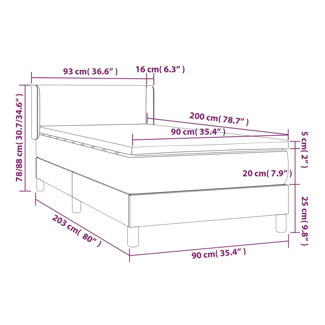 Sommier à lattes de lit avec matelas Gris foncé 90x200 cm Tissu