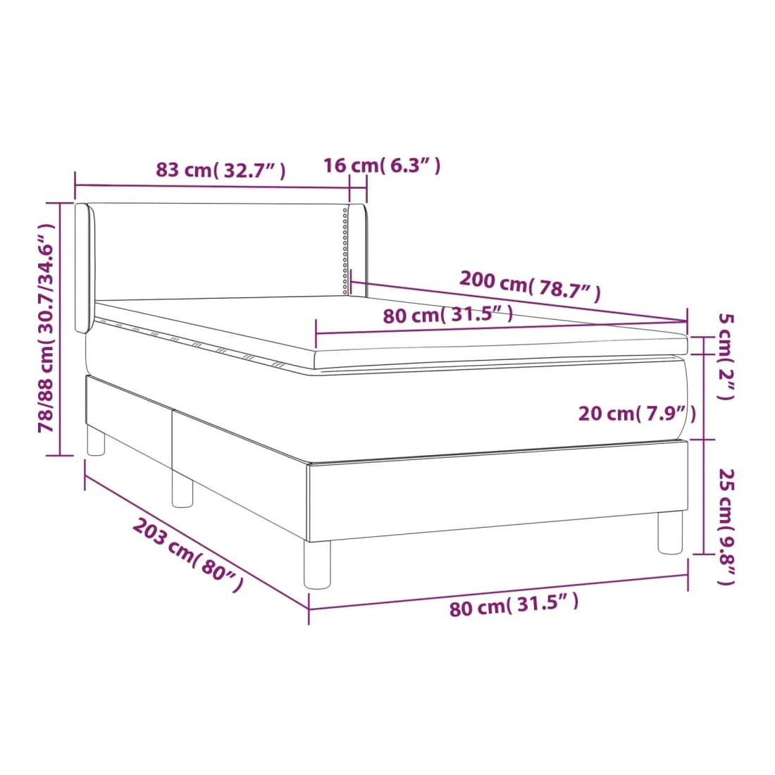 • Dimensions : 80 x 200 x 20 cm (l x L x H)