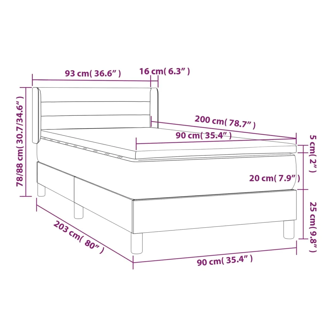 • Dimensions : 90 x 200 x 20 cm (l x L x H)