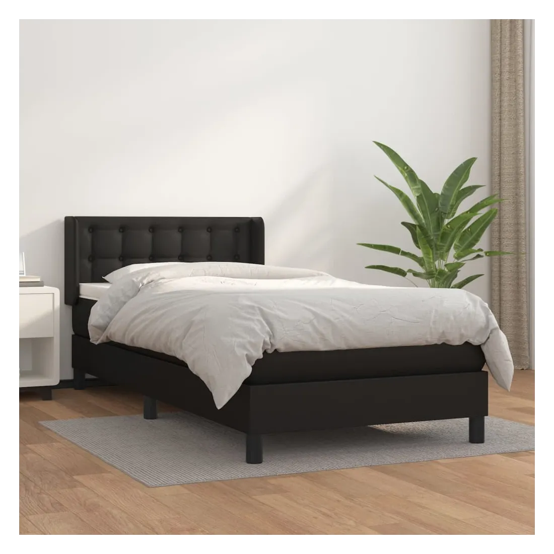 Sommier à lattes de lit avec matelas Noir 90x200 cm Similicuir