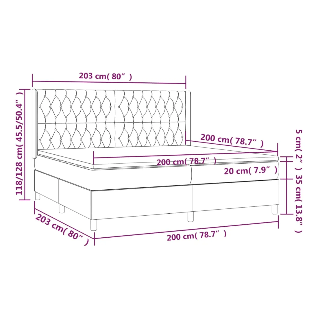 - Dimensions : 203 x 203 x 118/128 cm (L x l x H)