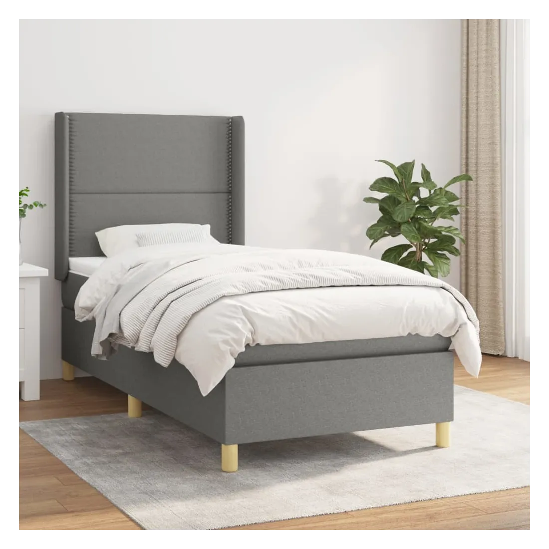 Sommier à lattes de lit avec matelas Gris foncé 90x200 cm Tissu
