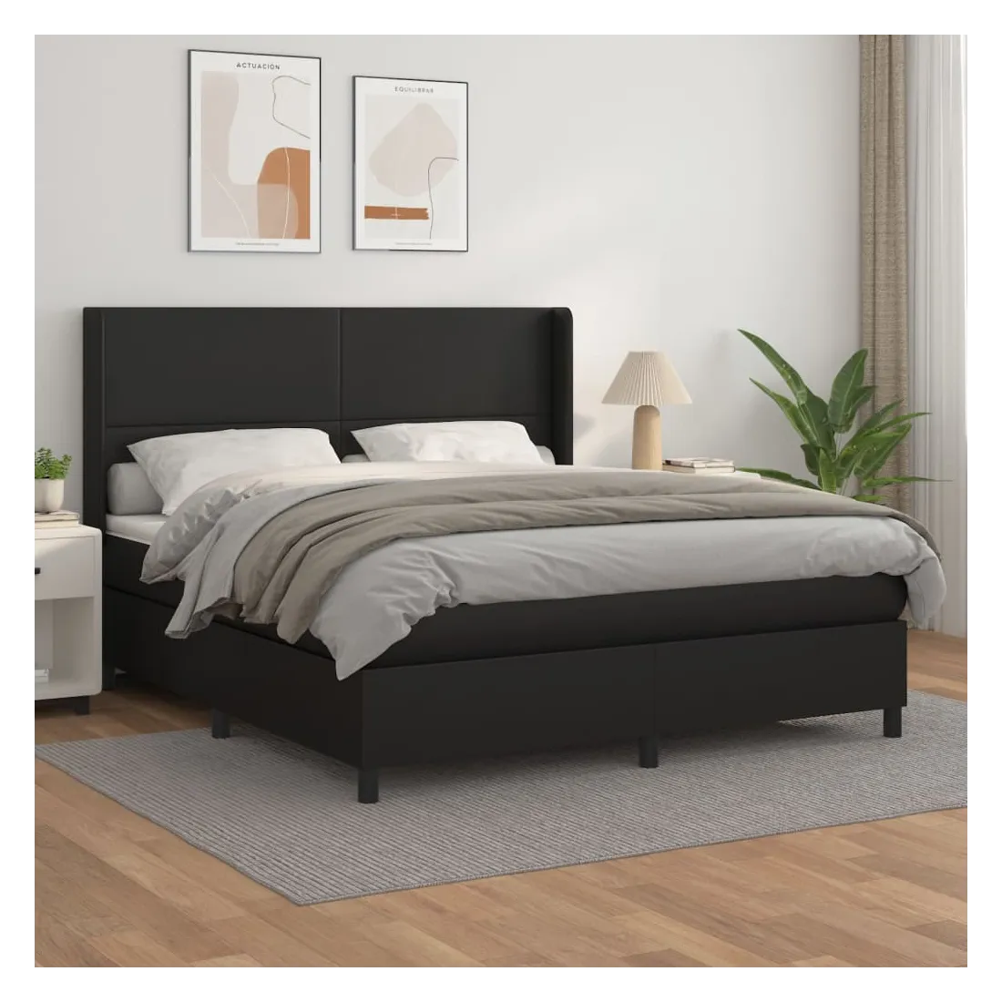 Sommier à lattes de lit avec matelas Noir 180x200 cm Similicuir