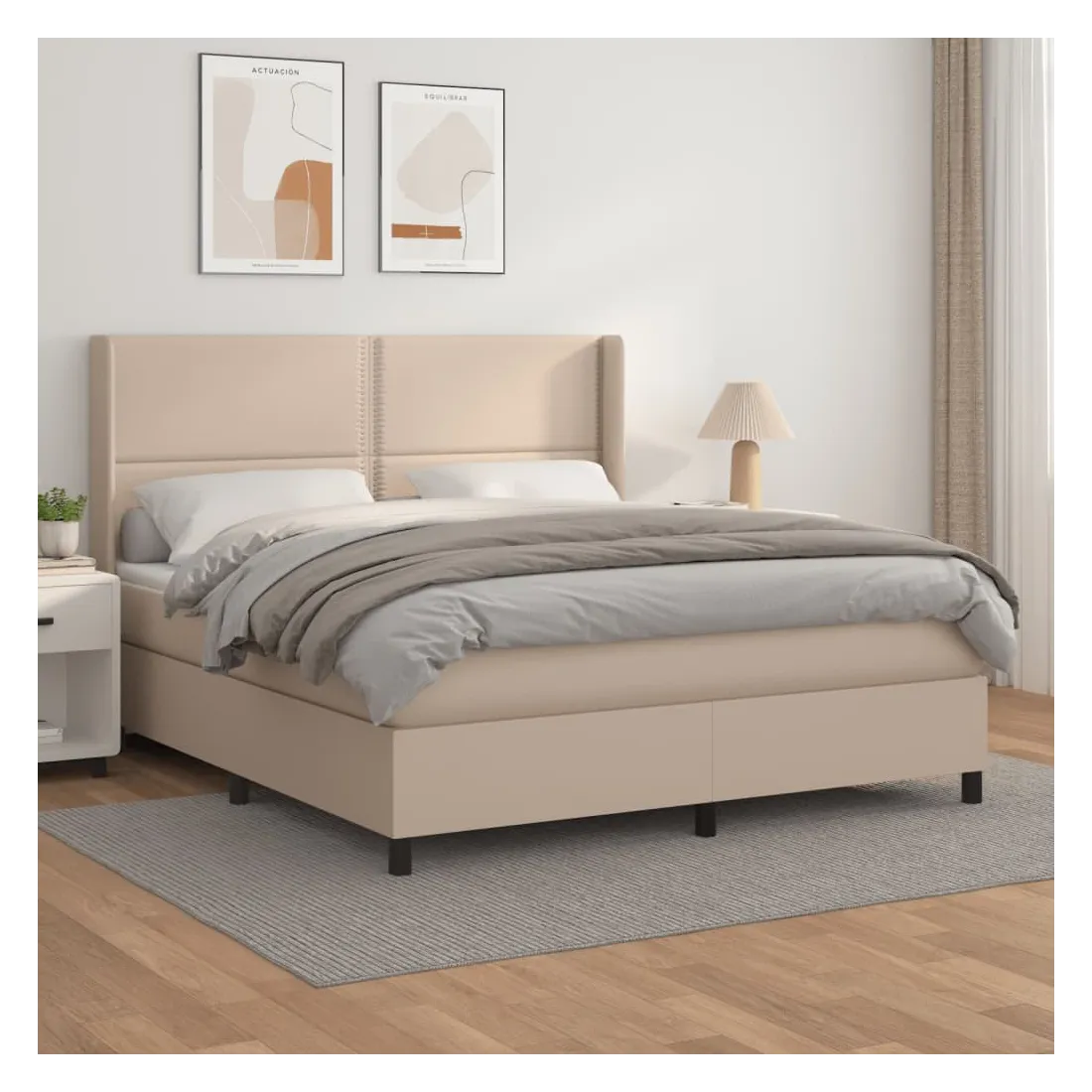 Utilisez ce lit à sommier pour profiter d'une nuit de sommeil réparatrice ! Il vous offre une relaxation maximale et un sommeil agréable. Similicuir durable : le similicuir de qualité supérieure est un matériau très durable. Il est résistant aux taches, ce qui le rend facile à nettoyer avec un chiffon humide. La surface lisse donne également un aspect luxueux et la beauté du cuir véritable. Tête de lit pratique : la tête de lit est réglable en hauteur selon vos préférences. La tête de lit vous offre un excellent soutien du dos lorsque vous êtes assis dans votre lit pour lire ou regarder la télévision. Matelas à ressorts ensachés : le ressort ensaché individuel intégré est connu pour sa très haute qualité tout en assurant un haut niveau de durabilité et d'adaptabilité. Il peut absorber