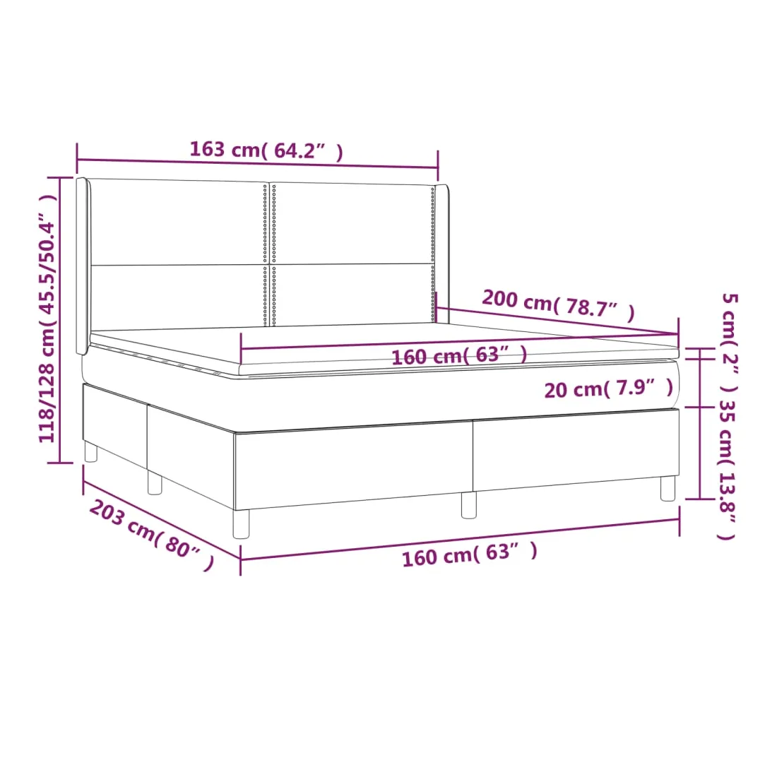 • Dimensions : 203 x 163 x 118/128 cm (L x l x H)