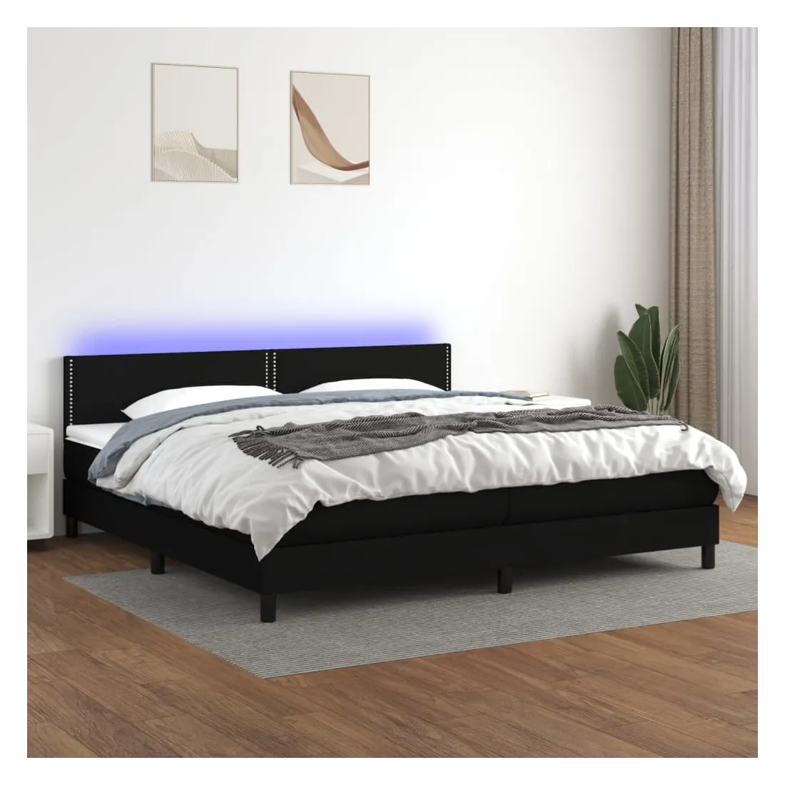 Utilisez ce sommier tapissier avec matelas et LED pour profiter d'un sommeil réparateur ! C'est le point central de votre chambre à coucher. Tissu durable : le tissu présente un aspect simple et épuré, et il est respirant et durable.Tête de lit pratique : la tête de lit est réglable en hauteur selon vos préférences. La tête de lit vous offre un excellent soutien du dos lorsque vous êtes assis dans votre lit pour lire ou regarder la télévision.Bande LED colorée : apportez de l'éclairage dans l'obscurité avec des lumières LED colorées !Matelas à ressorts ensachés : le ressort ensaché individuel intégré est connu pour sa très haute qualité tout en assurant un haut niveau de durabilité et d'adaptabilité. Il peut absorber efficacement le bruit et les chocs causés par les sauts et les rotations.Protège-matelas doux pour la peau : le protège-matelas est recouvert d'un tissu résistant et doux pour la peau, ce qui le rend souple et confortable. Remarque :Pour des raisons d'hygiène, le matelas ne peut pas être retourné si l'emballage est retiré ou ouvert.Chaque produit est livré avec un manuel de montage dans la boîte pour un montage facile.Seule la partie avec un symbole de ciseaux peut être coupée et seule la partie avec l'USB continuera à fonctionner comme avant.Ce produit est doté d'un connecteur USB, mais la source d'alimentation certifiée de USB 5V n'est pas incluse.