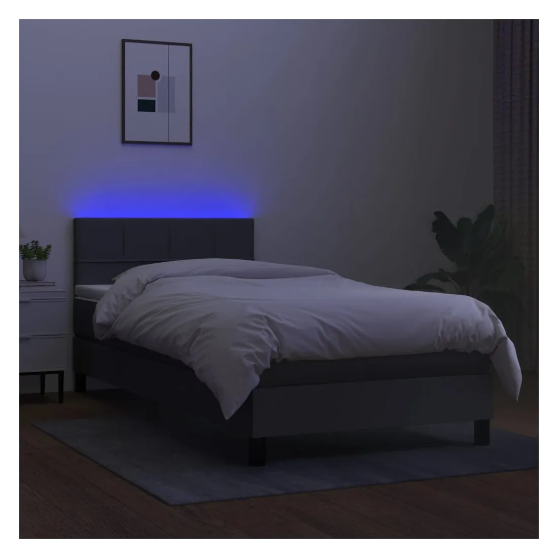 Utilisez ce sommier tapissier avec matelas et LED pour profiter d'un sommeil réparateur ! C'est le point central de votre chambre à coucher. Tissu durable : le tissu présente un aspect simple et épuré, et il est respirant et durable.Tête de lit pratique : la tête de lit est réglable en hauteur selon vos préférences. La tête de lit vous offre un excellent soutien du dos lorsque vous êtes assis dans votre lit pour lire ou regarder la télévision.Bande LED colorée : apportez de l'éclairage dans l'obscurité avec des lumières LED colorées !Matelas à ressorts ensachés : le ressort ensaché individuel intégré est connu pour sa très haute qualité tout en assurant un haut niveau de durabilité et d'adaptabilité. Il peut absorber efficacement le bruit et les chocs causés par les sauts et les rotations.Protège-matelas doux pour la peau : le protège-matelas est recouvert d'un tissu résistant et doux pour la peau, ce qui le rend souple et confortable. Remarque :Pour des raisons d'hygiène, le matelas ne peut pas être retourné si l'emballage est retiré ou ouvert.Chaque produit est livré avec un manuel de montage dans la boîte pour un montage facile.Seule la partie avec un symbole de ciseaux peut être coupée et seule la partie avec l'USB continuera à fonctionner comme avant.Ce produit est doté d'un connecteur USB, mais la source d'alimentation certifiée de USB 5V n'est pas incluse.