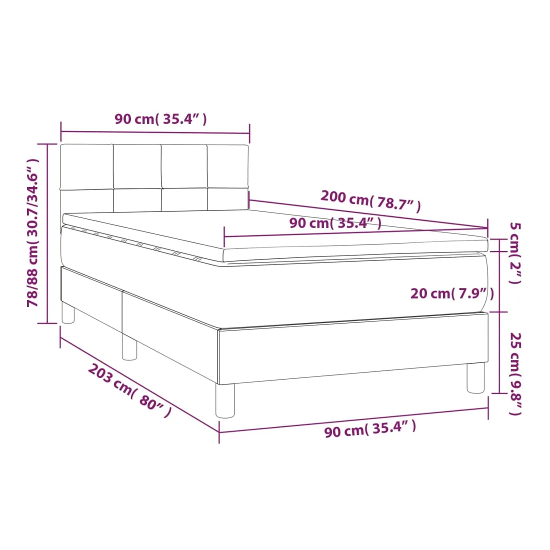 • Dimensions : 90 x 200 x 20 cm (l x L x H)