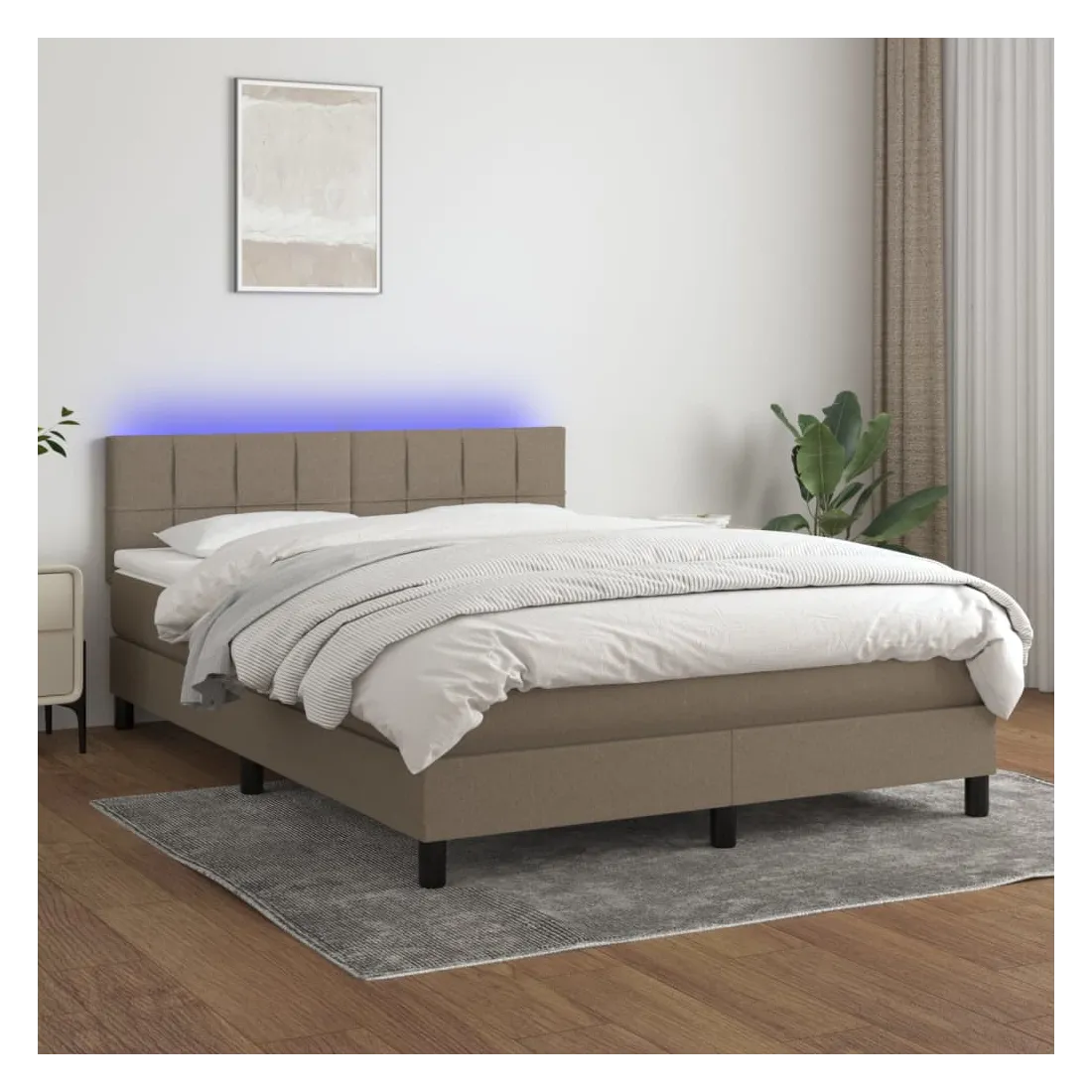 Sommier à lattes de lit avec matelas LED Taupe 140x190 cm Tissu
