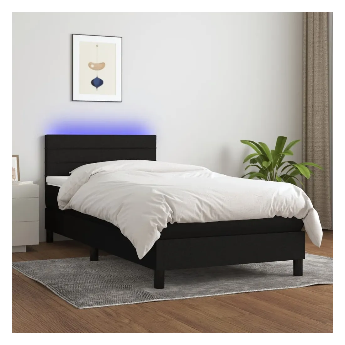 Utilisez ce sommier tapissier avec matelas et LED pour profiter d'un sommeil réparateur ! C'est le point central de votre chambre à coucher. Tissu durable : le tissu présente un aspect simple et épuré, et il est respirant et durable.Tête de lit pratique : la tête de lit est réglable en hauteur selon vos préférences. La tête de lit vous offre un excellent soutien du dos lorsque vous êtes assis dans votre lit pour lire ou regarder la télévision.Bande LED colorée : apportez de l'éclairage dans l'obscurité avec des lumières LED colorées !Matelas à ressorts ensachés : le ressort ensaché individuel intégré est connu pour sa très haute qualité tout en assurant un haut niveau de durabilité et d'adaptabilité. Il peut absorber efficacement le bruit et les chocs causés par les sauts et les rotations.Protège-matelas doux pour la peau : le protège-matelas est recouvert d'un tissu résistant et doux pour la peau, ce qui le rend souple et confortable. Remarque :Pour des raisons d'hygiène, le matelas ne peut pas être retourné si l'emballage est retiré ou ouvert.Chaque produit est livré avec un manuel de montage dans la boîte pour un montage facile.Seule la partie avec un symbole de ciseaux peut être coupée et seule la partie avec l'USB continuera à fonctionner comme avant.Ce produit est doté d'un connecteur USB, mais la source d'alimentation certifiée de USB 5V n'est pas incluse.