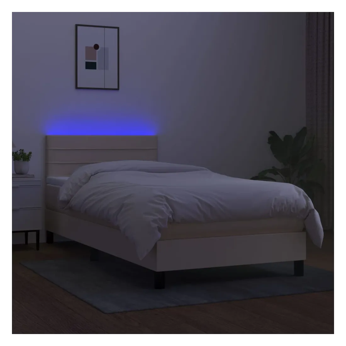 Sommier à lattes de lit avec matelas LED Crème 90x190 cm Tissu