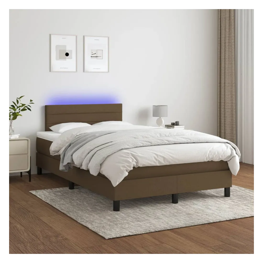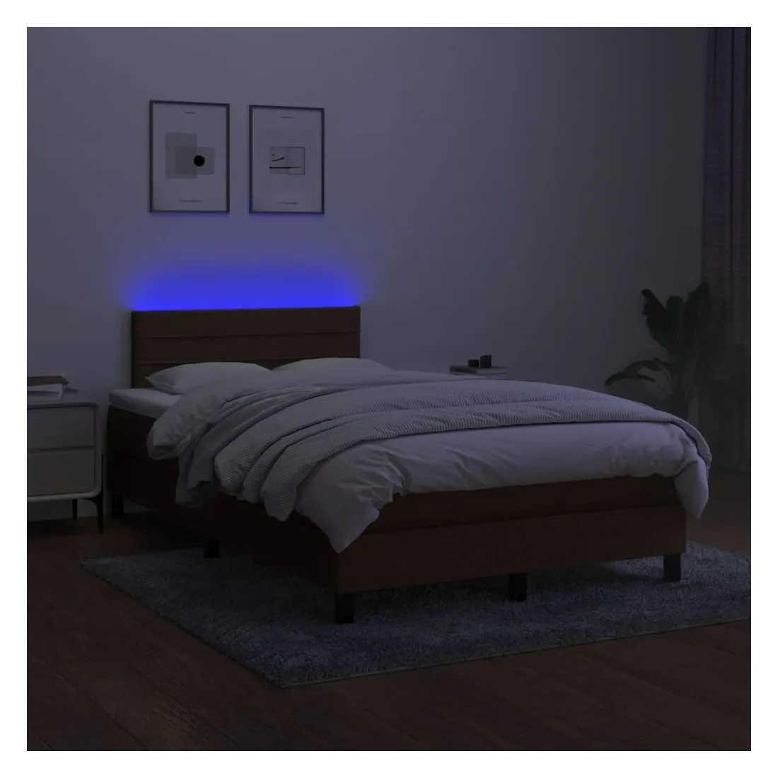 Sommier à lattes de lit matelas et LED Marron foncé 120x200 cm
