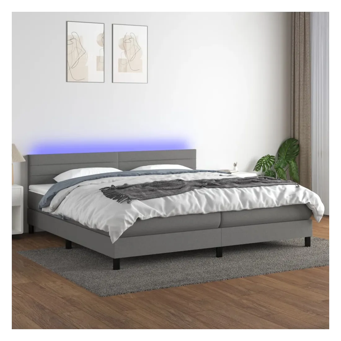 Utilisez ce sommier tapissier avec matelas et LED pour profiter d'un sommeil réparateur ! C'est le point central de votre chambre à coucher. Tissu durable : le tissu présente un aspect simple et épuré, et il est respirant et durable. Tête de lit pratique : la tête de lit est réglable en hauteur selon vos préférences. La tête de lit vous offre un excellent soutien du dos lorsque vous êtes assis dans votre lit pour lire ou regarder la télévision. Bande LED colorée : apportez de l'éclairage dans l'obscurité avec des lumières LED colorées ! Matelas à ressorts ensachés : le ressort ensaché individuel intégré est connu pour sa très haute qualité tout en assurant un haut niveau de durabilité et d'adaptabilité. Il peut absorber efficacement le bruit et les chocs causés par les sauts et les rot
