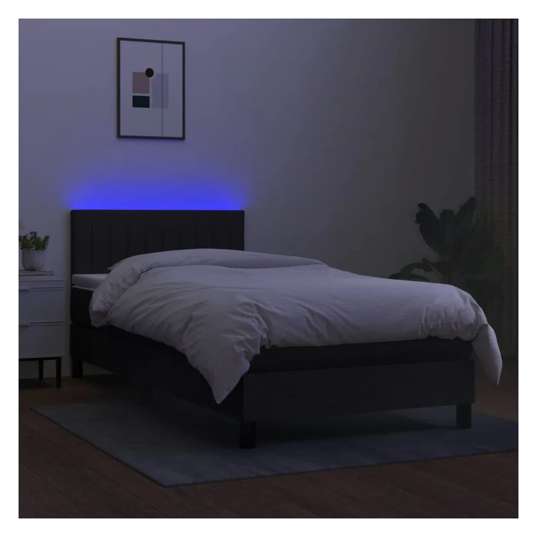 Sommier à lattes de lit avec matelas et LED Noir 90x190cm Tissu