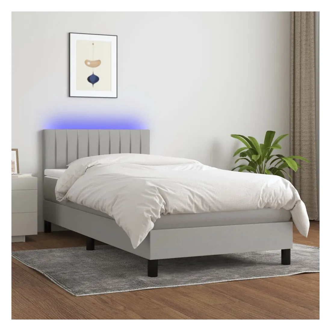 Sommier à lattes de lit avec matelas LED Gris clair 100x200 cm