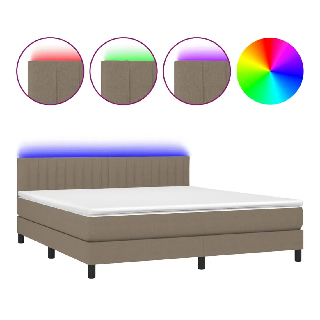 Sommier à lattes de lit avec matelas LED Taupe 180x200 cm Tissu