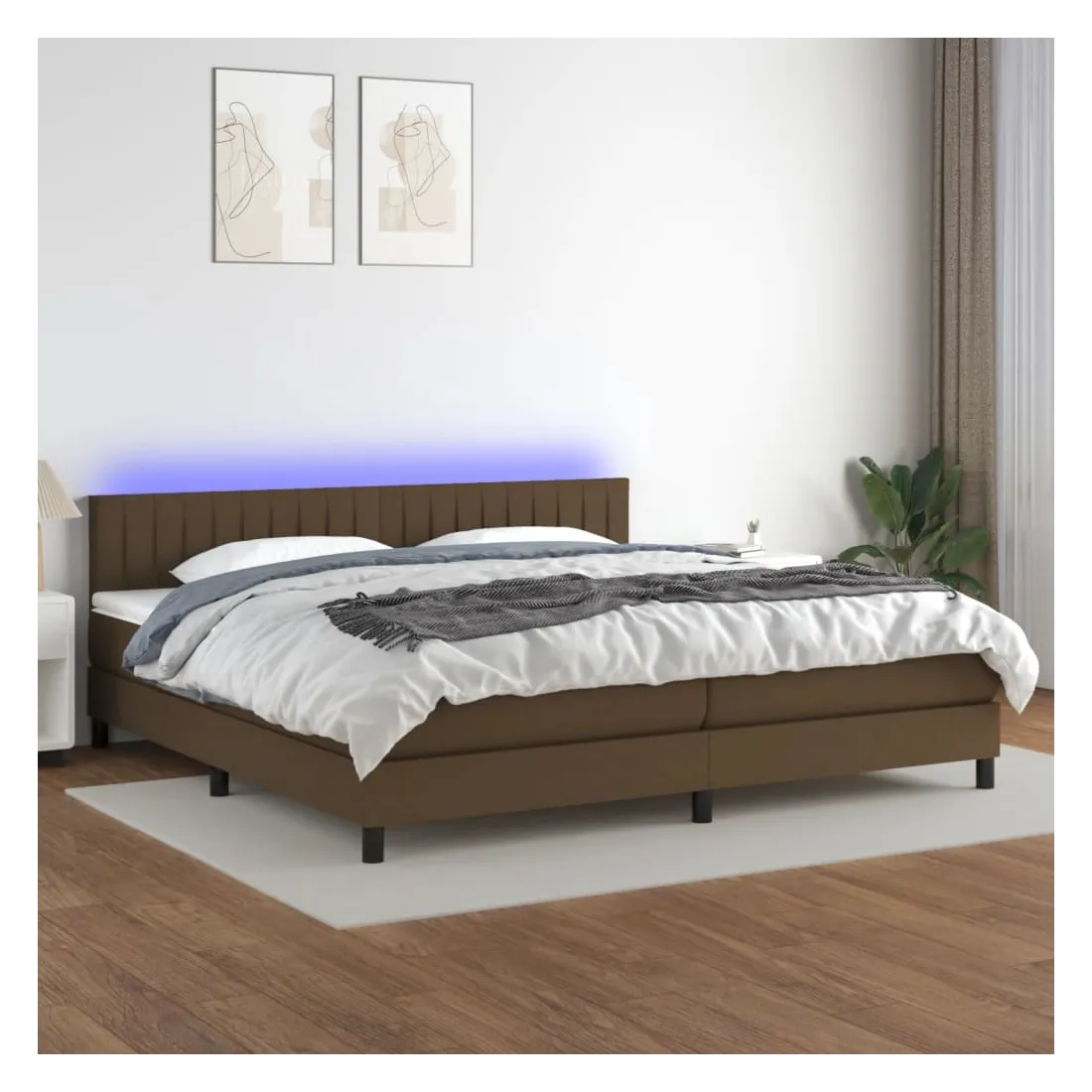 Utilisez ce sommier tapissier avec matelas et LED pour profiter d'un sommeil réparateur ! C'est le point central de votre chambre à coucher. Tissu durable : le tissu présente un aspect simple et épuré, et il est respirant et durable. Tête de lit pratique : la tête de lit est réglable en hauteur selon vos préférences. La tête de lit vous offre un excellent soutien du dos lorsque vous êtes assis dans votre lit pour lire ou regarder la télévision. Bande LED colorée : apportez de l'éclairage dans l'obscurité avec des lumières LED colorées ! Matelas à ressorts ensachés : le ressort ensaché individuel intégré est connu pour sa très haute qualité tout en assurant un haut niveau de durabilité et d'adaptabilité. Il peut absorber efficacement le bruit et les chocs causés par les sauts et les rot