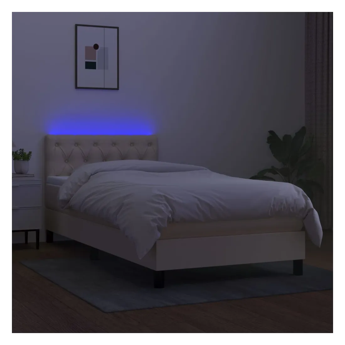 Utilisez ce sommier tapissier avec matelas et LED pour profiter d'un sommeil réparateur ! C'est le point central de votre chambre à coucher. Tissu durable : le tissu présente un aspect simple et épuré, et il est respirant et durable.Tête de lit pratique : la tête de lit est réglable en hauteur selon vos préférences. La tête de lit vous offre un excellent soutien du dos lorsque vous êtes assis dans votre lit pour lire ou regarder la télévision.Bande LED colorée : apportez de l'éclairage dans l'obscurité avec des lumières LED colorées !Matelas à ressorts ensachés : le ressort ensaché individuel intégré est connu pour sa très haute qualité tout en assurant un haut niveau de durabilité et d'adaptabilité. Il peut absorber efficacement le bruit et les chocs causés par les sauts et les rotations.Protège-matelas doux pour la peau : le protège-matelas est recouvert d'un tissu résistant et doux pour la peau, ce qui le rend souple et confortable. Remarque :Pour des raisons d'hygiène, le matelas ne peut pas être retourné si l'emballage est retiré ou ouvert.Chaque produit est livré avec un manuel de montage dans la boîte pour un montage facile.Seule la partie avec un symbole de ciseaux peut être coupée et seule la partie avec l'USB continuera à fonctionner comme avant.Ce produit est doté d'un connecteur USB, mais la source d'alimentation certifiée de USB 5V n'est pas incluse.