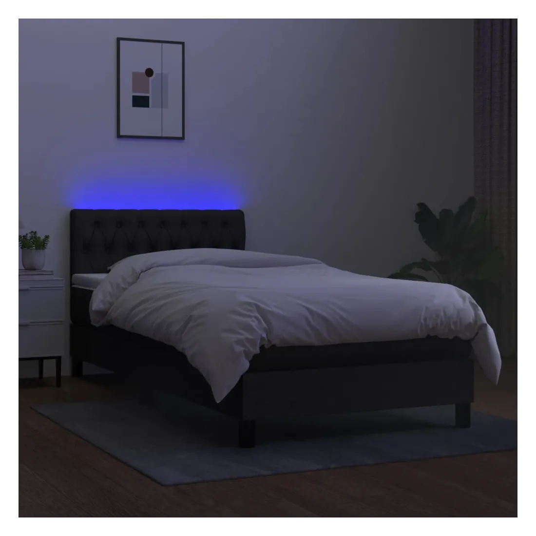 Utilisez ce sommier tapissier avec matelas et LED pour profiter d'un sommeil réparateur ! C'est le point central de votre chambre à coucher. Tissu durable : le tissu présente un aspect simple et épuré, et il est respirant et durable.Tête de lit pratique : la tête de lit est réglable en hauteur selon vos préférences. La tête de lit vous offre un excellent soutien du dos lorsque vous êtes assis dans votre lit pour lire ou regarder la télévision.Bande LED colorée : apportez de l'éclairage dans l'obscurité avec des lumières LED colorées !Matelas à ressorts ensachés : le ressort ensaché individuel intégré est connu pour sa très haute qualité tout en assurant un haut niveau de durabilité et d'adaptabilité. Il peut absorber efficacement le bruit et les chocs causés par les sauts et les rotations.Protège-matelas doux pour la peau : le protège-matelas est recouvert d'un tissu résistant et doux pour la peau, ce qui le rend souple et confortable. Remarque :Pour des raisons d'hygiène, le matelas ne peut pas être retourné si l'emballage est retiré ou ouvert.Chaque produit est livré avec un manuel de montage dans la boîte pour un montage facile.Seule la partie avec un symbole de ciseaux peut être coupée et seule la partie avec l'USB continuera à fonctionner comme avant.Ce produit est doté d'un connecteur USB, mais la source d'alimentation certifiée de USB 5V n'est pas incluse.