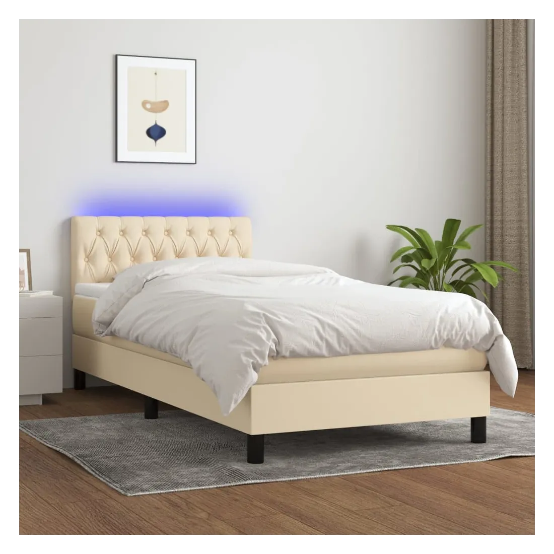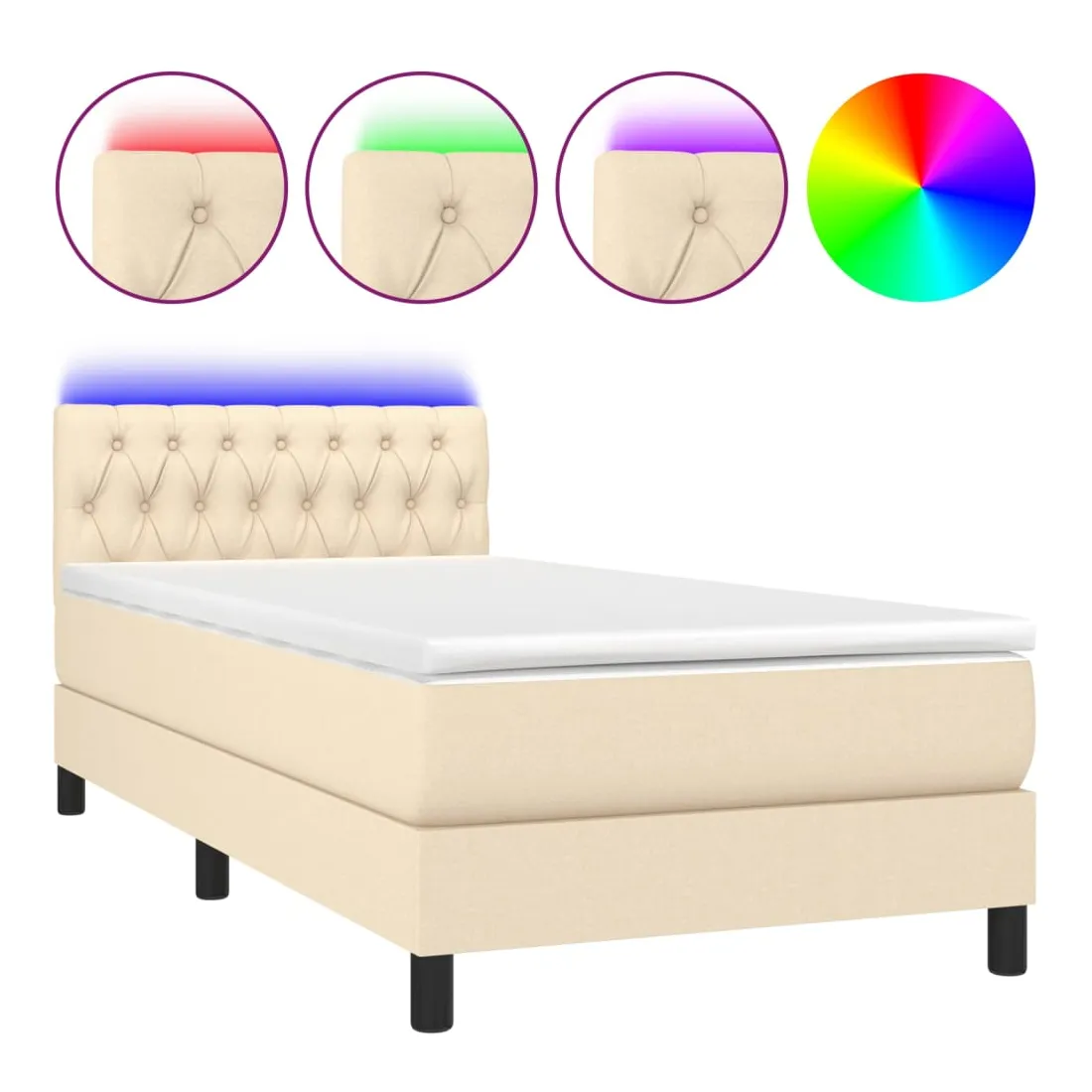 Sommier à lattes de lit avec matelas LED Crème 90x190 cm Tissu