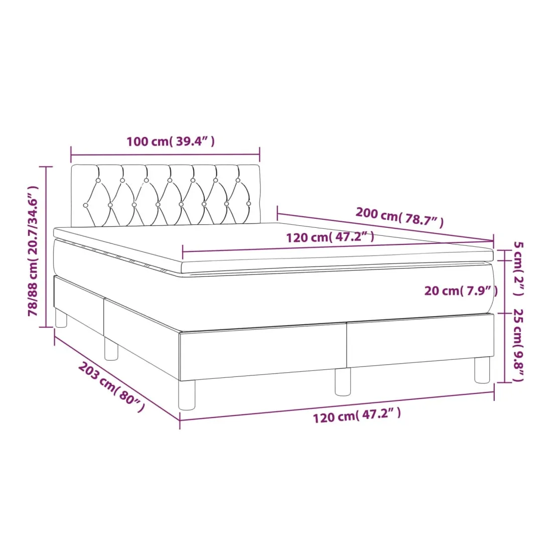 • Dimensions : 120 x 200 x 20 cm (l x L x H)