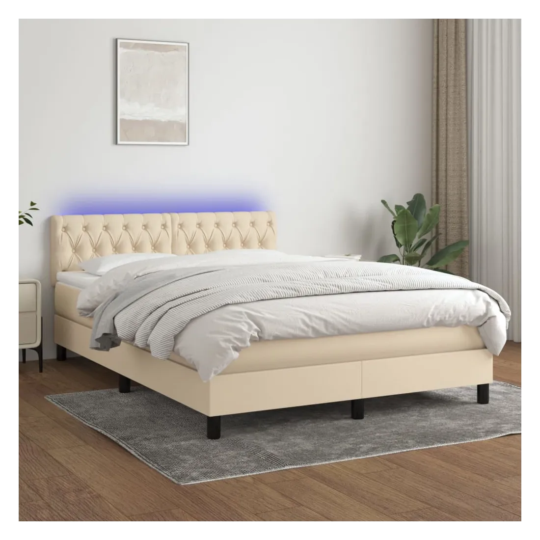 Utilisez ce sommier tapissier avec matelas et LED pour profiter d'un sommeil réparateur ! C'est le point central de votre chambre à coucher. Tissu durable : le tissu présente un aspect simple et épuré, et il est respirant et durable. Tête de lit pratique : la tête de lit est réglable en hauteur selon vos préférences. La tête de lit vous offre un excellent soutien du dos lorsque vous êtes assis dans votre lit pour lire ou regarder la télévision. Bande LED colorée : apportez de l'éclairage dans l'obscurité avec des lumières LED colorées ! Matelas à ressorts ensachés : le ressort ensaché individuel intégré est connu pour sa très haute qualité tout en assurant un haut niveau de durabilité et d'adaptabilité. Il peut absorber efficacement le bruit et les chocs causés par les sauts et les rot