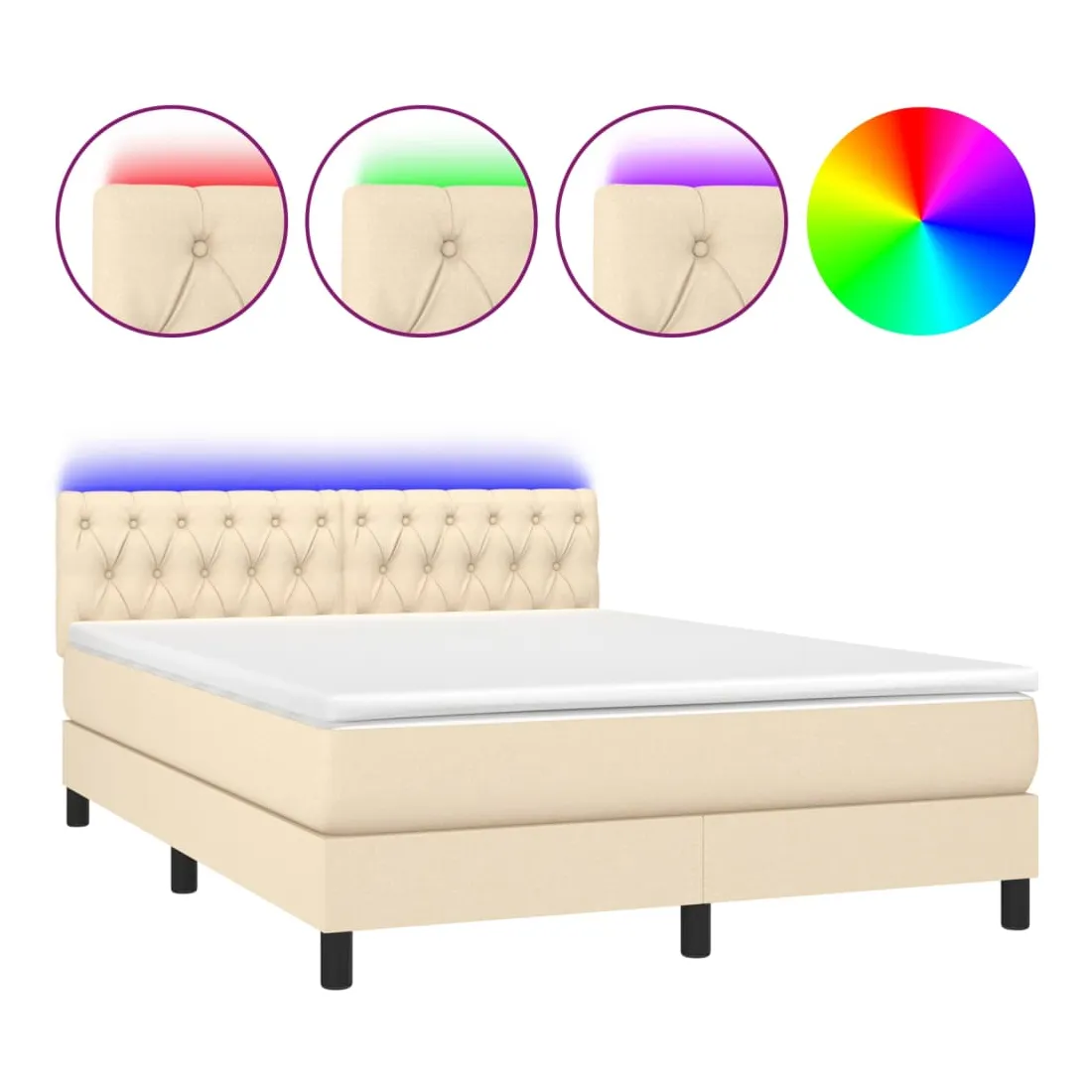 Utilisez ce sommier tapissier avec matelas et LED pour profiter d'un sommeil réparateur ! C'est le point central de votre chambre à coucher. Tissu durable : le tissu présente un aspect simple et épuré, et il est respirant et durable.Tête de lit pratique : la tête de lit est réglable en hauteur selon vos préférences. La tête de lit vous offre un excellent soutien du dos lorsque vous êtes assis dans votre lit pour lire ou regarder la télévision.Bande LED colorée : apportez de l'éclairage dans l'obscurité avec des lumières LED colorées !Matelas à ressorts ensachés : le ressort ensaché individuel intégré est connu pour sa très haute qualité tout en assurant un haut niveau de durabilité et d'adaptabilité. Il peut absorber efficacement le bruit et les chocs causés par les sauts et les rotations.Protège-matelas doux pour la peau : le protège-matelas est recouvert d'un tissu résistant et doux pour la peau, ce qui le rend souple et confortable. Remarque :Pour des raisons d'hygiène, le matelas ne peut pas être retourné si l'emballage est retiré ou ouvert.Chaque produit est livré avec un manuel de montage dans la boîte pour un montage facile.Seule la partie avec un symbole de ciseaux peut être coupée et seule la partie avec l'USB continuera à fonctionner comme avant.Ce produit est doté d'un connecteur USB, mais la source d'alimentation certifiée de USB 5V n'est pas incluse.