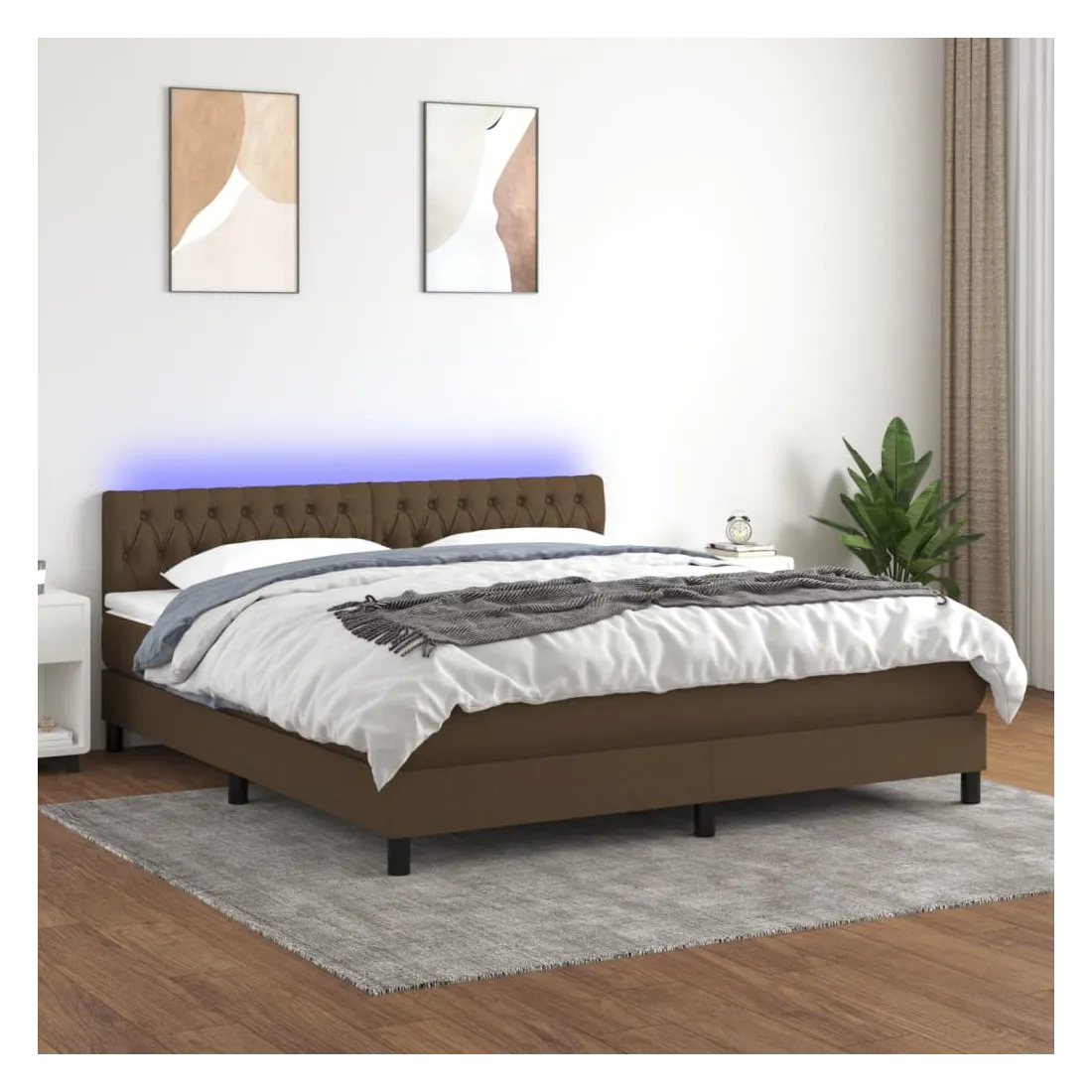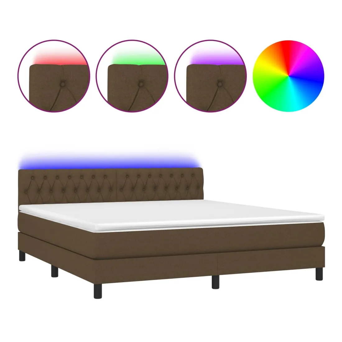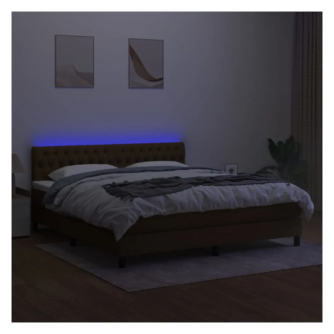 Utilisez ce sommier tapissier avec matelas et LED pour profiter d'un sommeil réparateur ! C'est le point central de votre chambre à coucher. Tissu durable : le tissu présente un aspect simple et épuré, et il est respirant et durable.Tête de lit pratique : la tête de lit est réglable en hauteur selon vos préférences. La tête de lit vous offre un excellent soutien du dos lorsque vous êtes assis dans votre lit pour lire ou regarder la télévision.Bande LED colorée : apportez de l'éclairage dans l'obscurité avec des lumières LED colorées !Matelas à ressorts ensachés : le ressort ensaché individuel intégré est connu pour sa très haute qualité tout en assurant un haut niveau de durabilité et d'adaptabilité. Il peut absorber efficacement le bruit et les chocs causés par les sauts et les rotations.Protège-matelas doux pour la peau : le protège-matelas est recouvert d'un tissu résistant et doux pour la peau, ce qui le rend souple et confortable. Remarque :Pour des raisons d'hygiène, le matelas ne peut pas être retourné si l'emballage est retiré ou ouvert.Chaque produit est livré avec un manuel de montage dans la boîte pour un montage facile.Seule la partie avec un symbole de ciseaux peut être coupée et seule la partie avec l'USB continuera à fonctionner comme avant.Ce produit est doté d'un connecteur USB, mais la source d'alimentation certifiée de USB 5V n'est pas incluse.