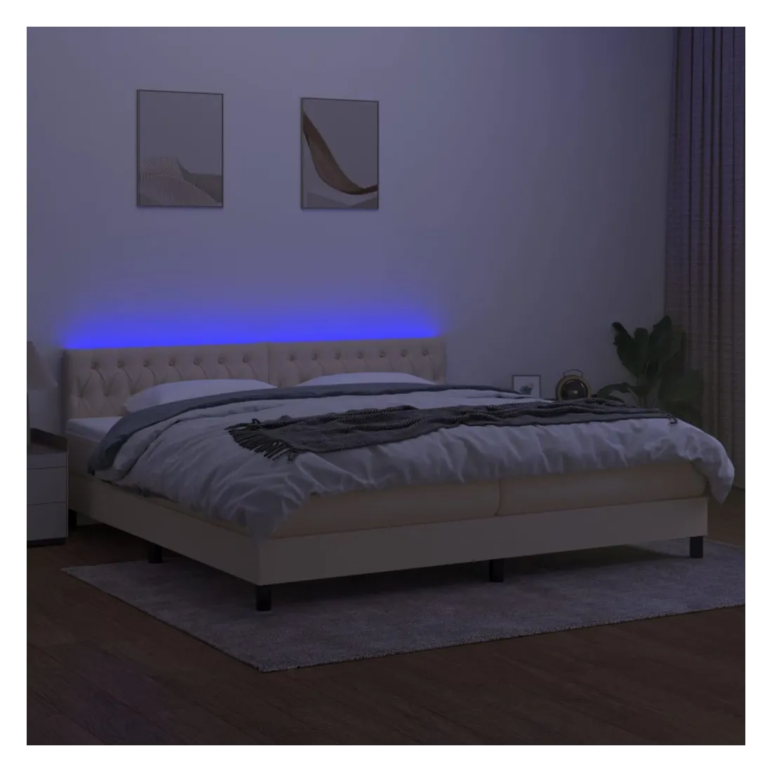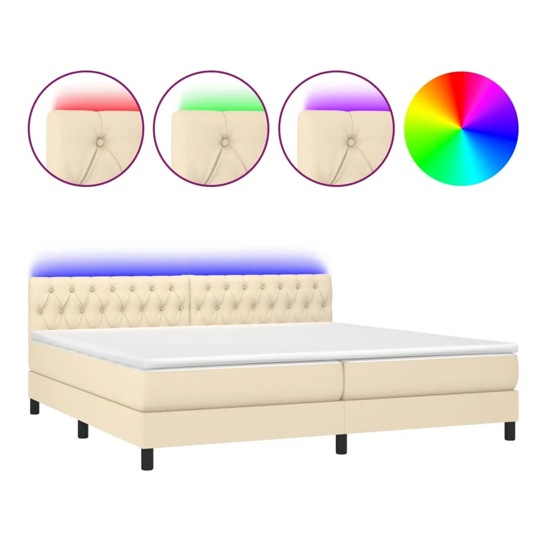 Utilisez ce sommier tapissier avec matelas et LED pour profiter d'un sommeil réparateur ! C'est le point central de votre chambre à coucher. Tissu durable : le tissu présente un aspect simple et épuré, et il est respirant et durable.Tête de lit pratique : la tête de lit est réglable en hauteur selon vos préférences. La tête de lit vous offre un excellent soutien du dos lorsque vous êtes assis dans votre lit pour lire ou regarder la télévision.Bande LED colorée : apportez de l'éclairage dans l'obscurité avec des lumières LED colorées !Matelas à ressorts ensachés : le ressort ensaché individuel intégré est connu pour sa très haute qualité tout en assurant un haut niveau de durabilité et d'adaptabilité. Il peut absorber efficacement le bruit et les chocs causés par les sauts et les rotations.Protège-matelas doux pour la peau : le protège-matelas est recouvert d'un tissu résistant et doux pour la peau, ce qui le rend souple et confortable. Remarque :Pour des raisons d'hygiène, le matelas ne peut pas être retourné si l'emballage est retiré ou ouvert.Chaque produit est livré avec un manuel de montage dans la boîte pour un montage facile.Seule la partie avec un symbole de ciseaux peut être coupée et seule la partie avec l'USB continuera à fonctionner comme avant.Ce produit est doté d'un connecteur USB, mais la source d'alimentation certifiée de USB 5V n'est pas incluse.