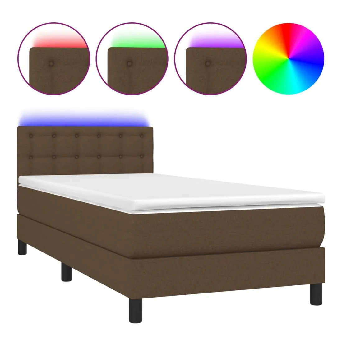 Sommier à lattes de lit et matelas et LED Marron foncé 90x200cm