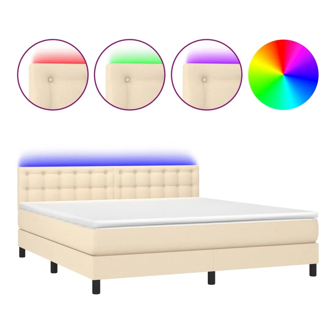 Sommier à lattes de lit avec matelas LED Crème 180x200 cm Tissu
