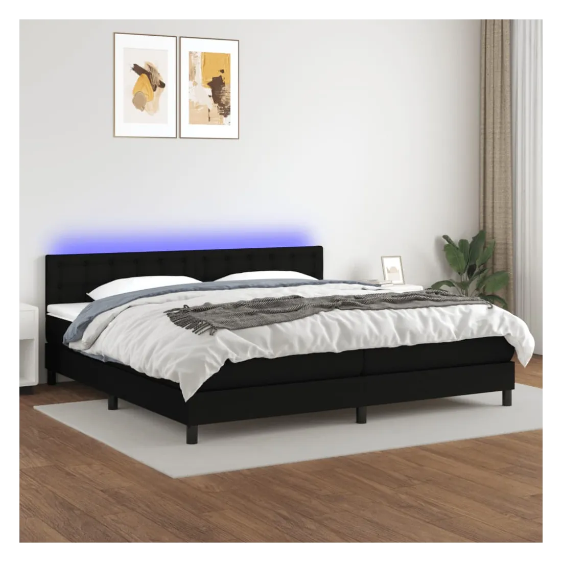 Utilisez ce sommier tapissier avec matelas et LED pour profiter d'un sommeil réparateur ! C'est le point central de votre chambre à coucher. Tissu durable : le tissu présente un aspect simple et épuré, et il est respirant et durable. Tête de lit pratique : la tête de lit est réglable en hauteur selon vos préférences. La tête de lit vous offre un excellent soutien du dos lorsque vous êtes assis dans votre lit pour lire ou regarder la télévision. Bande LED colorée : apportez de l'éclairage dans l'obscurité avec des lumières LED colorées ! Matelas à ressorts ensachés : le ressort ensaché individuel intégré est connu pour sa très haute qualité tout en assurant un haut niveau de durabilité et d'adaptabilité. Il peut absorber efficacement le bruit et les chocs causés par les sauts et les rot