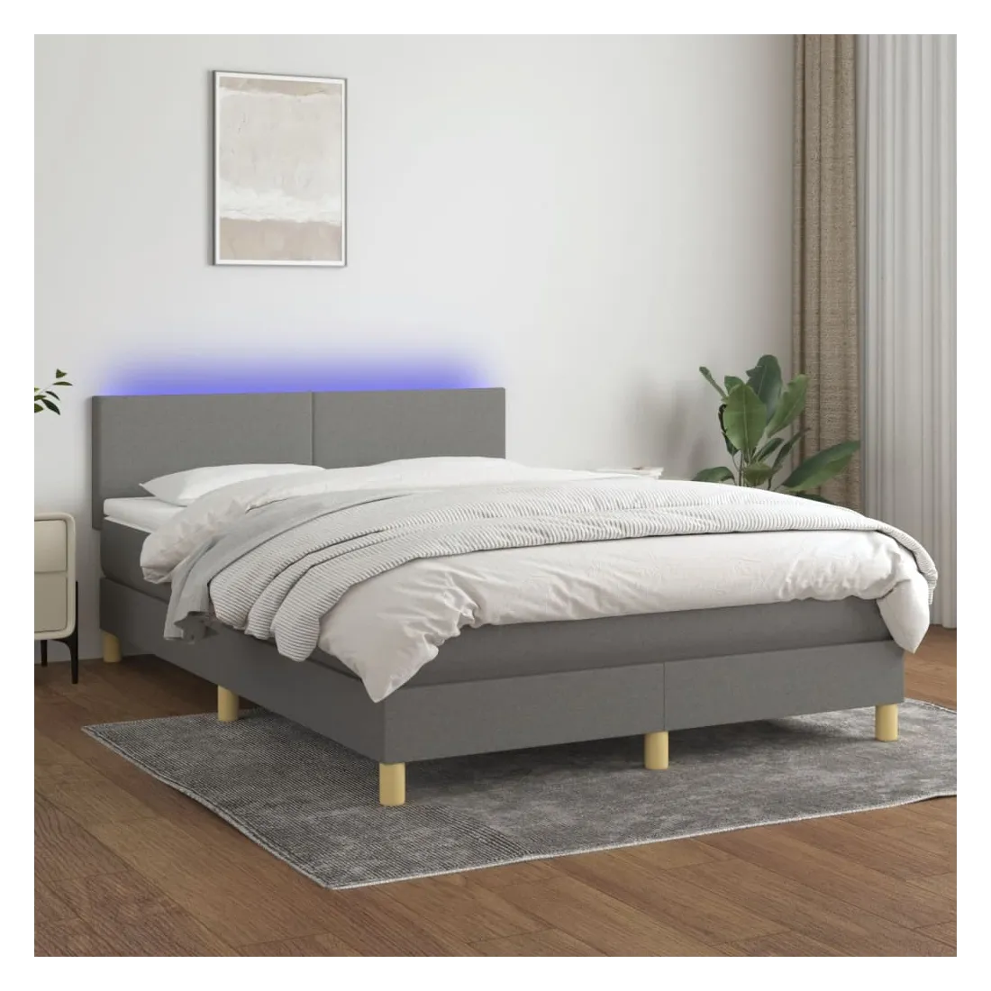 Utilisez ce sommier tapissier avec matelas et LED pour profiter d'un sommeil réparateur ! C'est le point central de votre chambre à coucher. Tissu durable : le tissu présente un aspect simple et épuré, et il est respirant et durable. Tête de lit pratique : la tête de lit est réglable en hauteur selon vos préférences. La tête de lit vous offre un excellent soutien du dos lorsque vous êtes assis dans votre lit pour lire ou regarder la télévision. Bande LED colorée : apportez de l'éclairage dans l'obscurité avec des lumières LED colorées ! Matelas à ressorts ensachés : le ressort ensaché individuel intégré est connu pour sa très haute qualité tout en assurant un haut niveau de durabilité et d'adaptabilité. Il peut absorber efficacement le bruit et les chocs causés par les sauts et les rot