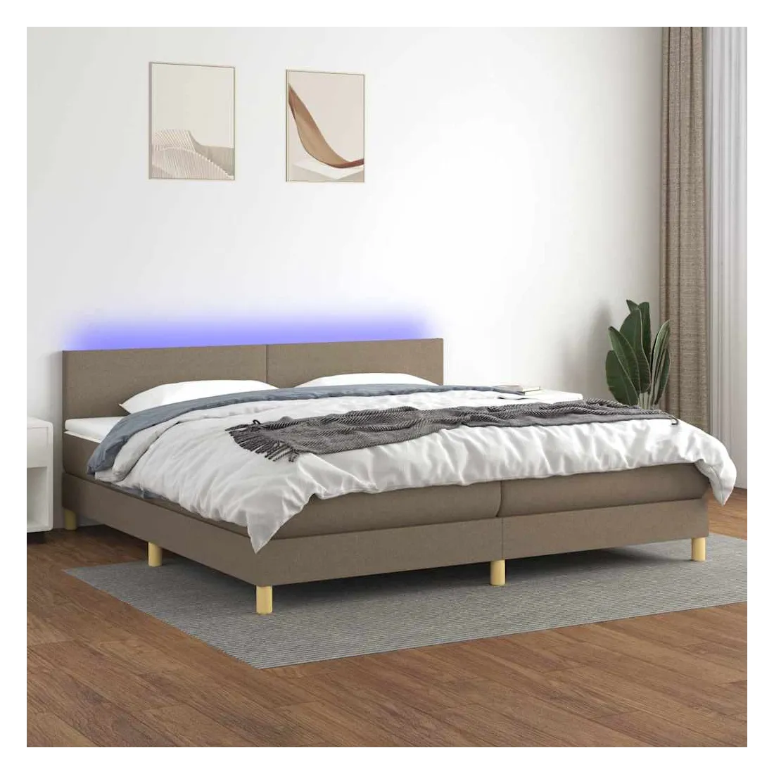 Sommier à lattes de lit et matelas et LED Taupe 200x200cm Tissu