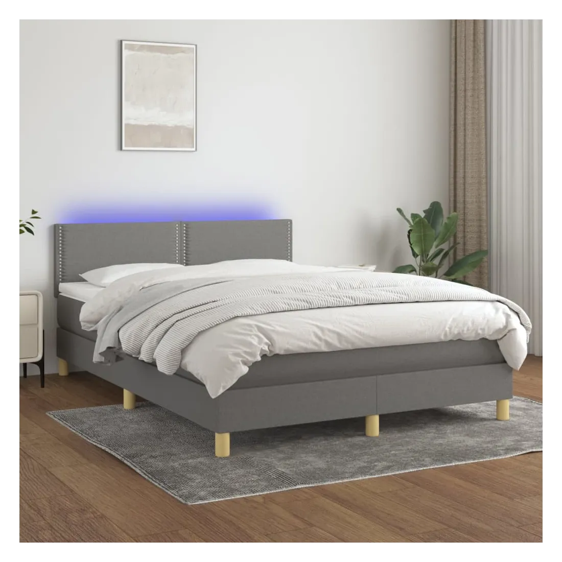 Sommier à lattes de lit et matelas et LED Gris foncé 140x190 cm