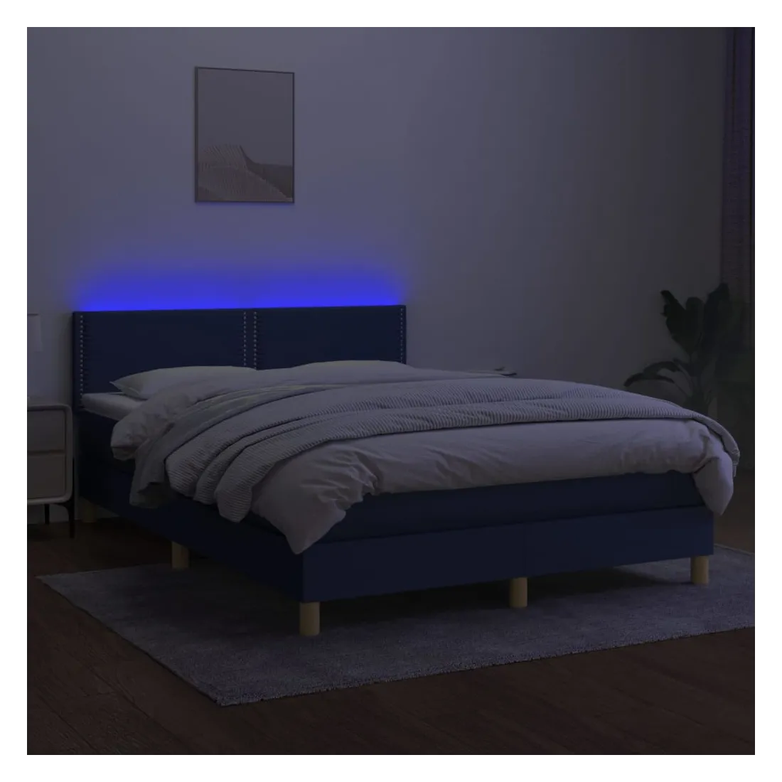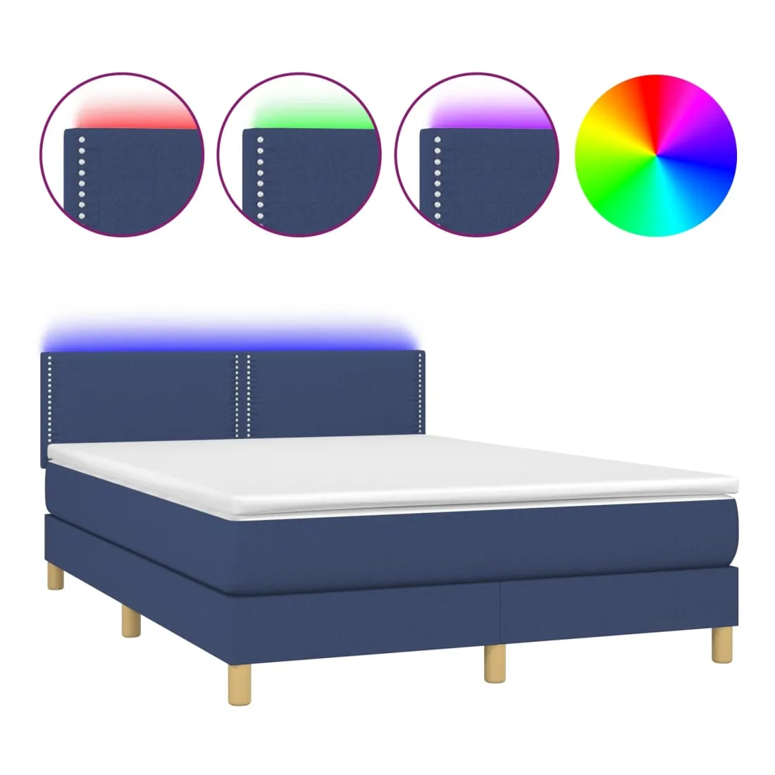 Sommier à lattes de lit avec matelas LED Bleu 140x190 cm Tissu