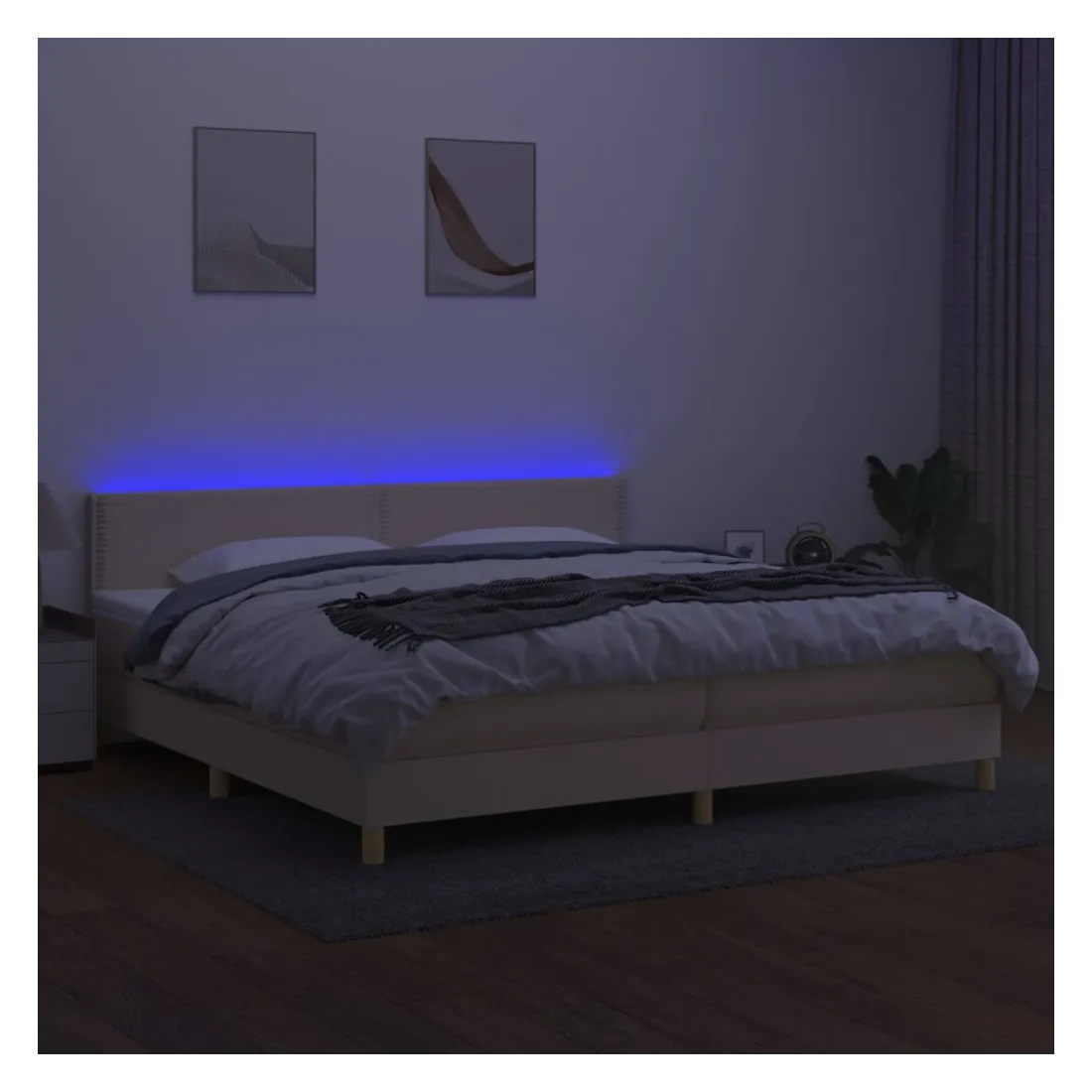 Utilisez ce sommier tapissier avec matelas et LED pour profiter d'un sommeil réparateur ! C'est le point central de votre chambre à coucher. Tissu durable : le tissu présente un aspect simple et épuré, et il est respirant et durable.Tête de lit pratique : la tête de lit est réglable en hauteur selon vos préférences. La tête de lit vous offre un excellent soutien du dos lorsque vous êtes assis dans votre lit pour lire ou regarder la télévision.Bande LED colorée : apportez de l'éclairage dans l'obscurité avec des lumières LED colorées !Matelas à ressorts ensachés : le ressort ensaché individuel intégré est connu pour sa très haute qualité tout en assurant un haut niveau de durabilité et d'adaptabilité. Il peut absorber efficacement le bruit et les chocs causés par les sauts et les rotations.Protège-matelas doux pour la peau : le protège-matelas est recouvert d'un tissu résistant et doux pour la peau, ce qui le rend souple et confortable. Remarque :Pour des raisons d'hygiène, le matelas ne peut pas être retourné si l'emballage est retiré ou ouvert.Chaque produit est livré avec un manuel de montage dans la boîte pour un montage facile.Seule la partie avec un symbole de ciseaux peut être coupée et seule la partie avec l'USB continuera à fonctionner comme avant.Ce produit est doté d'un connecteur USB, mais la source d'alimentation certifiée de USB 5V n'est pas incluse.