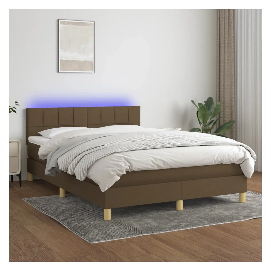 Utilisez ce sommier tapissier avec matelas et LED pour profiter d'un sommeil réparateur ! C'est le point central de votre chambre à coucher. Tissu durable : le tissu présente un aspect simple et épuré, et il est respirant et durable. Tête de lit pratique : la tête de lit est réglable en hauteur selon vos préférences. La tête de lit vous offre un excellent soutien du dos lorsque vous êtes assis dans votre lit pour lire ou regarder la télévision. Bande LED colorée : apportez de l'éclairage dans l'obscurité avec des lumières LED colorées ! Matelas à ressorts ensachés : le ressort ensaché individuel intégré est connu pour sa très haute qualité tout en assurant un haut niveau de durabilité et d'adaptabilité. Il peut absorber efficacement le bruit et les chocs causés par les sauts et les rot