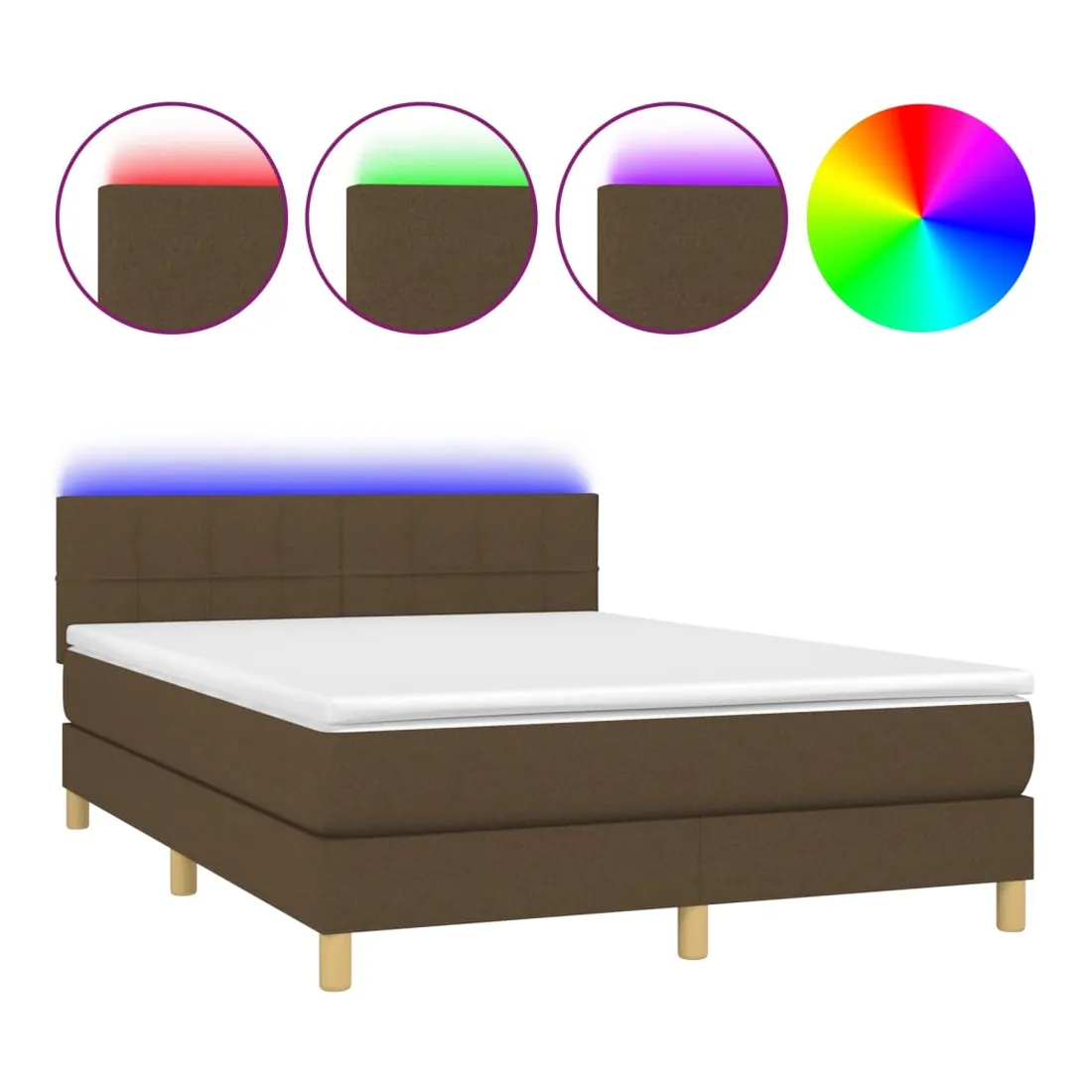 Utilisez ce sommier tapissier avec matelas et LED pour profiter d'un sommeil réparateur ! C'est le point central de votre chambre à coucher. Tissu durable : le tissu présente un aspect simple et épuré, et il est respirant et durable.Tête de lit pratique : la tête de lit est réglable en hauteur selon vos préférences. La tête de lit vous offre un excellent soutien du dos lorsque vous êtes assis dans votre lit pour lire ou regarder la télévision.Bande LED colorée : apportez de l'éclairage dans l'obscurité avec des lumières LED colorées !Matelas à ressorts ensachés : le ressort ensaché individuel intégré est connu pour sa très haute qualité tout en assurant un haut niveau de durabilité et d'adaptabilité. Il peut absorber efficacement le bruit et les chocs causés par les sauts et les rotations.Protège-matelas doux pour la peau : le protège-matelas est recouvert d'un tissu résistant et doux pour la peau, ce qui le rend souple et confortable. Remarque :Pour des raisons d'hygiène, le matelas ne peut pas être retourné si l'emballage est retiré ou ouvert.Chaque produit est livré avec un manuel de montage dans la boîte pour un montage facile.Seule la partie avec un symbole de ciseaux peut être coupée et seule la partie avec l'USB continuera à fonctionner comme avant.Ce produit est doté d'un connecteur USB, mais la source d'alimentation certifiée de USB 5V n'est pas incluse.