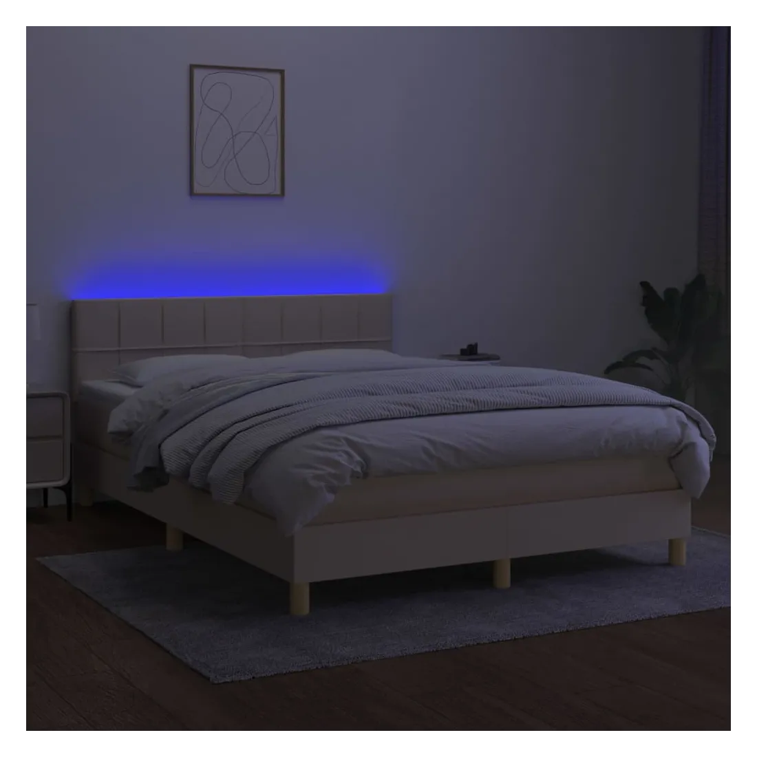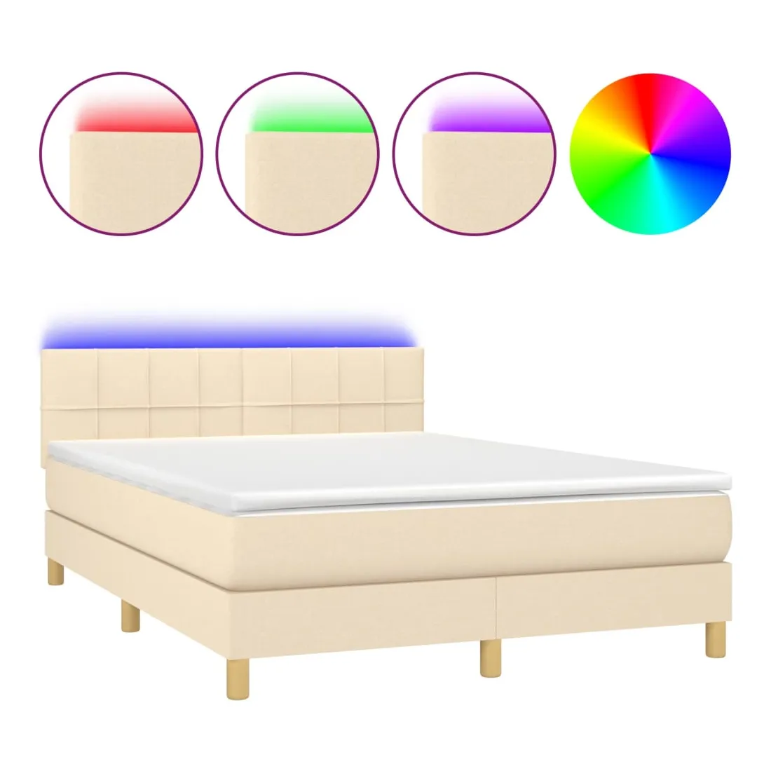 Sommier à lattes de lit avec matelas LED Crème 140x200 cm Tissu