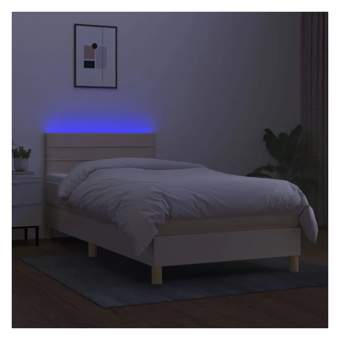 Sommier à lattes de lit avec matelas LED Crème 90x190 cm Tissu