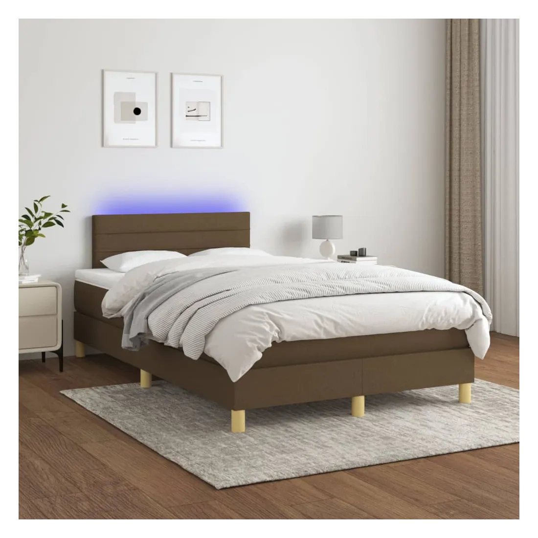 Utilisez ce sommier tapissier avec matelas et LED pour profiter d'un sommeil réparateur ! C'est le point central de votre chambre à coucher. Tissu durable : le tissu présente un aspect simple et épuré, et il est respirant et durable. Tête de lit pratique : la tête de lit est réglable en hauteur selon vos préférences. La tête de lit vous offre un excellent soutien du dos lorsque vous êtes assis dans votre lit pour lire ou regarder la télévision. Bande LED colorée : apportez de l'éclairage dans l'obscurité avec des lumières LED colorées ! Matelas à ressorts ensachés : le ressort ensaché individuel intégré est connu pour sa très haute qualité tout en assurant un haut niveau de durabilité et d'adaptabilité. Il peut absorber efficacement le bruit et les chocs causés par les sauts et les rot