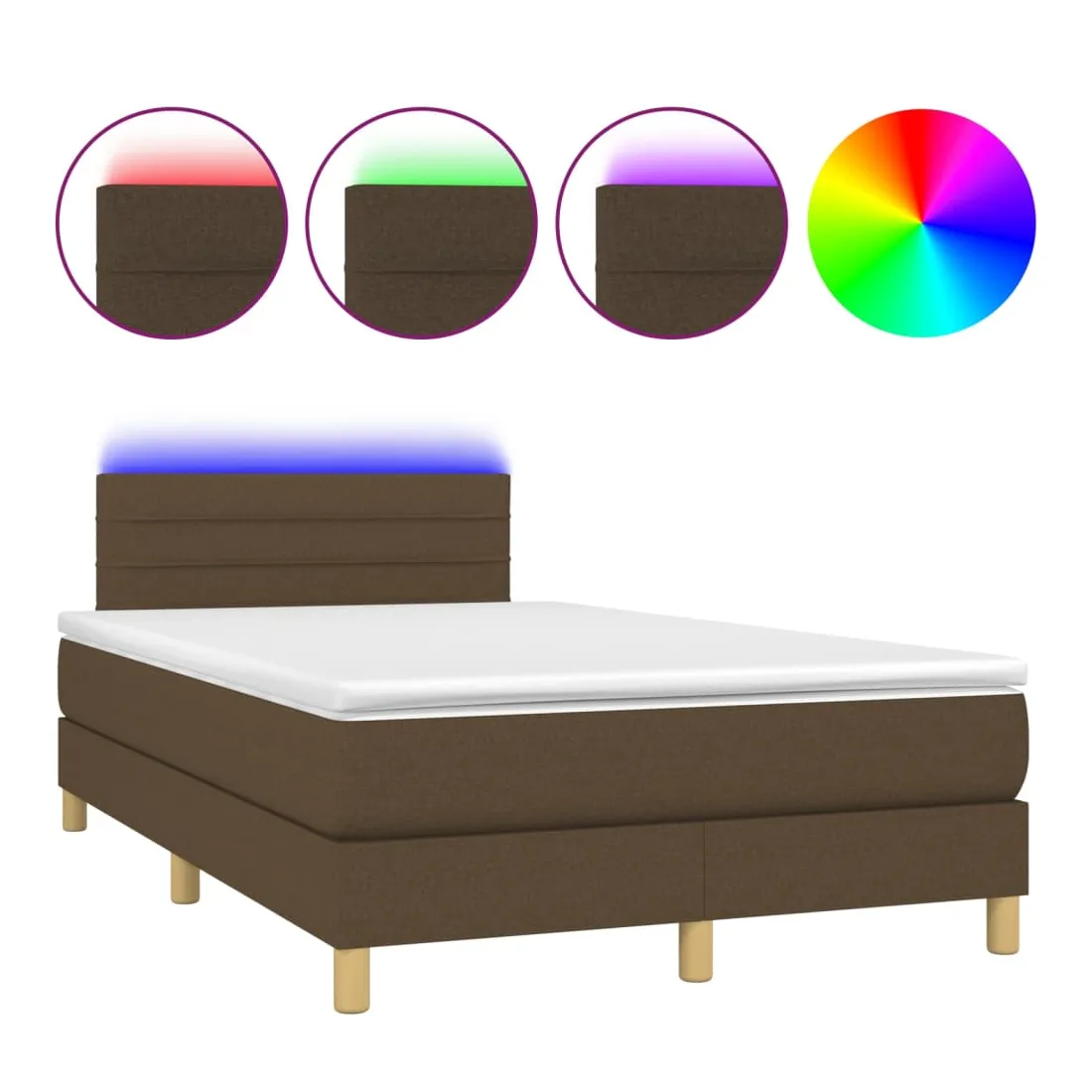 Utilisez ce sommier tapissier avec matelas et LED pour profiter d'un sommeil réparateur ! C'est le point central de votre chambre à coucher. Tissu durable : le tissu présente un aspect simple et épuré, et il est respirant et durable.Tête de lit pratique : la tête de lit est réglable en hauteur selon vos préférences. La tête de lit vous offre un excellent soutien du dos lorsque vous êtes assis dans votre lit pour lire ou regarder la télévision.Bande LED colorée : apportez de l'éclairage dans l'obscurité avec des lumières LED colorées !Matelas à ressorts ensachés : le ressort ensaché individuel intégré est connu pour sa très haute qualité tout en assurant un haut niveau de durabilité et d'adaptabilité. Il peut absorber efficacement le bruit et les chocs causés par les sauts et les rotations.Protège-matelas doux pour la peau : le protège-matelas est recouvert d'un tissu résistant et doux pour la peau, ce qui le rend souple et confortable. Remarque :Pour des raisons d'hygiène, le matelas ne peut pas être retourné si l'emballage est retiré ou ouvert.Chaque produit est livré avec un manuel de montage dans la boîte pour un montage facile.Seule la partie avec un symbole de ciseaux peut être coupée et seule la partie avec l'USB continuera à fonctionner comme avant.Ce produit est doté d'un connecteur USB, mais la source d'alimentation certifiée de USB 5V n'est pas incluse.