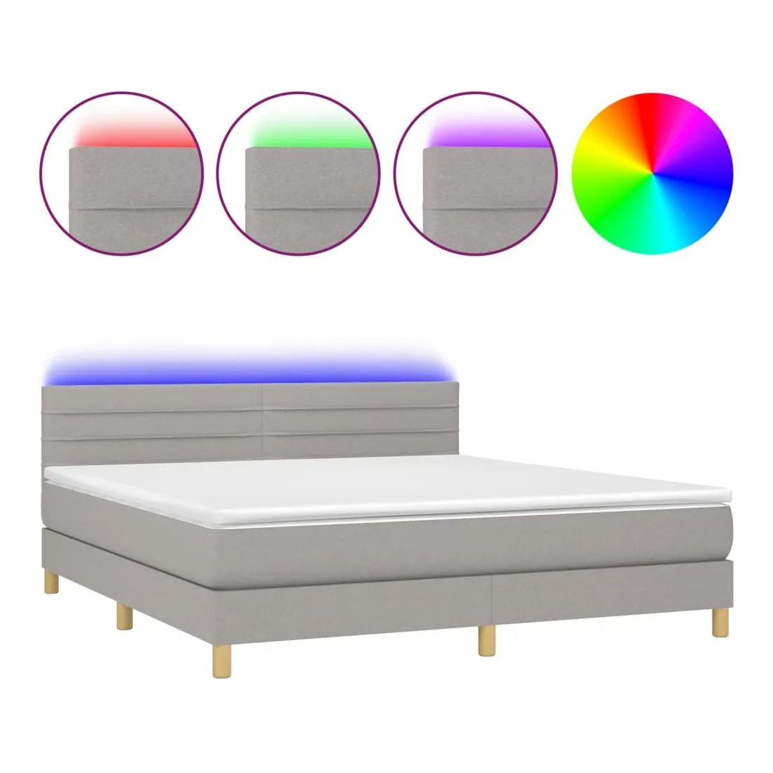 Utilisez ce sommier tapissier avec matelas et LED pour profiter d'un sommeil réparateur ! C'est le point central de votre chambre à coucher. Tissu durable : le tissu présente un aspect simple et épuré, et il est respirant et durable.Tête de lit pratique : la tête de lit est réglable en hauteur selon vos préférences. La tête de lit vous offre un excellent soutien du dos lorsque vous êtes assis dans votre lit pour lire ou regarder la télévision.Bande LED colorée : apportez de l'éclairage dans l'obscurité avec des lumières LED colorées !Matelas à ressorts ensachés : le ressort ensaché individuel intégré est connu pour sa très haute qualité tout en assurant un haut niveau de durabilité et d'adaptabilité. Il peut absorber efficacement le bruit et les chocs causés par les sauts et les rotations.Protège-matelas doux pour la peau : le protège-matelas est recouvert d'un tissu résistant et doux pour la peau, ce qui le rend souple et confortable. Remarque :Pour des raisons d'hygiène, le matelas ne peut pas être retourné si l'emballage est retiré ou ouvert.Chaque produit est livré avec un manuel de montage dans la boîte pour un montage facile.Seule la partie avec un symbole de ciseaux peut être coupée et seule la partie avec l'USB continuera à fonctionner comme avant.Ce produit est doté d'un connecteur USB, mais la source d'alimentation certifiée de USB 5V n'est pas incluse.