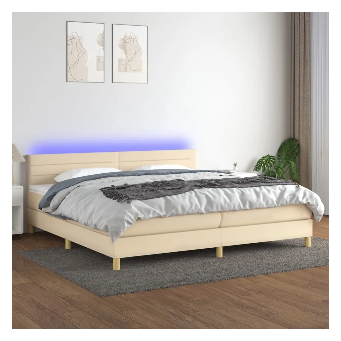 Sommier à lattes de lit et matelas et LED Crème 200x200cm Tissu
