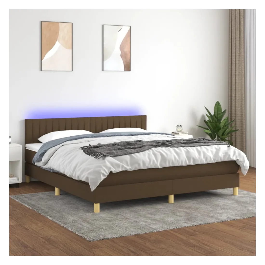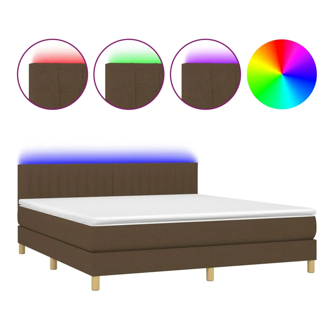 Utilisez ce sommier tapissier avec matelas et LED pour profiter d'un sommeil réparateur ! C'est le point central de votre chambre à coucher. Tissu durable : le tissu présente un aspect simple et épuré, et il est respirant et durable.Tête de lit pratique : la tête de lit est réglable en hauteur selon vos préférences. La tête de lit vous offre un excellent soutien du dos lorsque vous êtes assis dans votre lit pour lire ou regarder la télévision.Bande LED colorée : apportez de l'éclairage dans l'obscurité avec des lumières LED colorées !Matelas à ressorts ensachés : le ressort ensaché individuel intégré est connu pour sa très haute qualité tout en assurant un haut niveau de durabilité et d'adaptabilité. Il peut absorber efficacement le bruit et les chocs causés par les sauts et les rotations.Protège-matelas doux pour la peau : le protège-matelas est recouvert d'un tissu résistant et doux pour la peau, ce qui le rend souple et confortable. Remarque :Pour des raisons d'hygiène, le matelas ne peut pas être retourné si l'emballage est retiré ou ouvert.Chaque produit est livré avec un manuel de montage dans la boîte pour un montage facile.Seule la partie avec un symbole de ciseaux peut être coupée et seule la partie avec l'USB continuera à fonctionner comme avant.Ce produit est doté d'un connecteur USB, mais la source d'alimentation certifiée de USB 5V n'est pas incluse.
