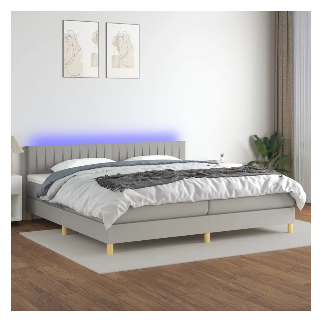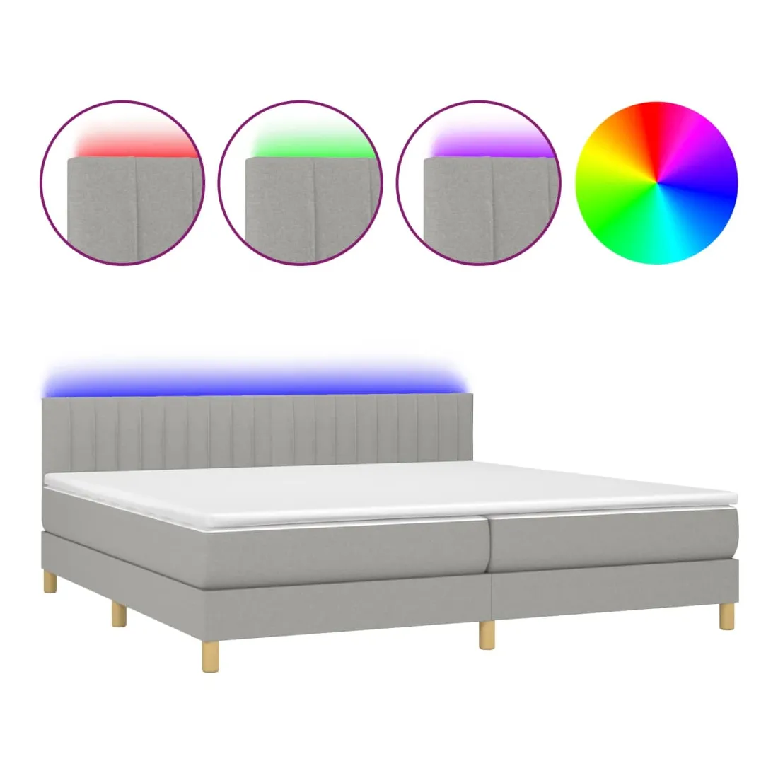 Utilisez ce sommier tapissier avec matelas et LED pour profiter d'un sommeil réparateur ! C'est le point central de votre chambre à coucher. Tissu durable : le tissu présente un aspect simple et épuré, et il est respirant et durable.Tête de lit pratique : la tête de lit est réglable en hauteur selon vos préférences. La tête de lit vous offre un excellent soutien du dos lorsque vous êtes assis dans votre lit pour lire ou regarder la télévision.Bande LED colorée : apportez de l'éclairage dans l'obscurité avec des lumières LED colorées !Matelas à ressorts ensachés : le ressort ensaché individuel intégré est connu pour sa très haute qualité tout en assurant un haut niveau de durabilité et d'adaptabilité. Il peut absorber efficacement le bruit et les chocs causés par les sauts et les rotations.Protège-matelas doux pour la peau : le protège-matelas est recouvert d'un tissu résistant et doux pour la peau, ce qui le rend souple et confortable. Remarque :Pour des raisons d'hygiène, le matelas ne peut pas être retourné si l'emballage est retiré ou ouvert.Chaque produit est livré avec un manuel de montage dans la boîte pour un montage facile.Seule la partie avec un symbole de ciseaux peut être coupée et seule la partie avec l'USB continuera à fonctionner comme avant.Ce produit est doté d'un connecteur USB, mais la source d'alimentation certifiée de USB 5V n'est pas incluse.